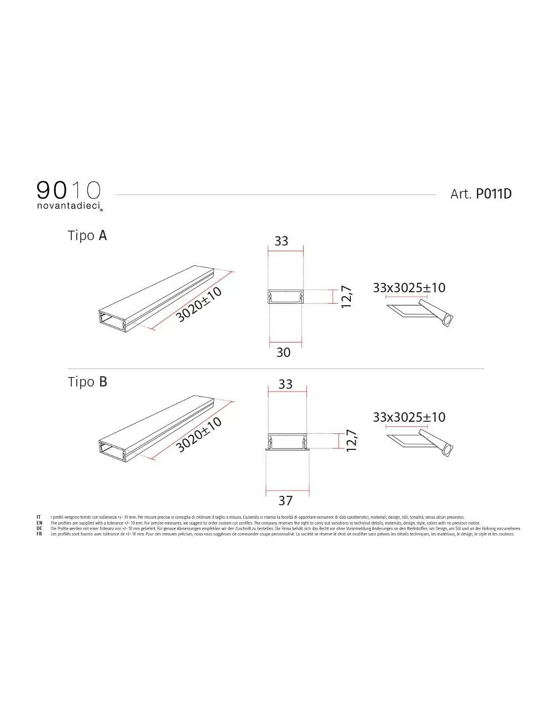 Profilo in alumite adatto per installazione su cartongesso o legno adatto per alloggiare striscia led.