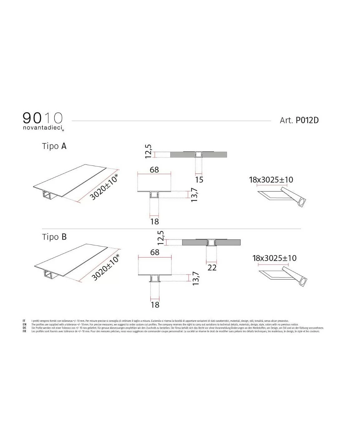 Profilo in alumite adatto per installazione su cartongesso o legno adatto per alloggiare striscia led.