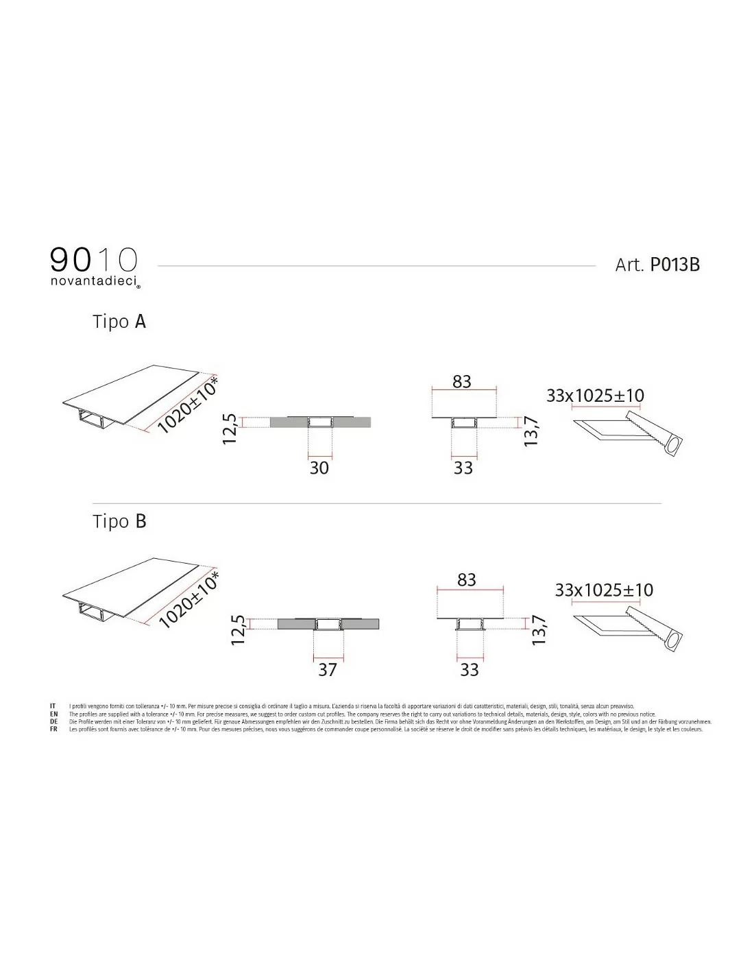 Schermo opalino disponibile in due versioni, una (versione A) planare alla superficie di installazione ed una (versione B) con bordo coprente (per evitare la stuccatura)