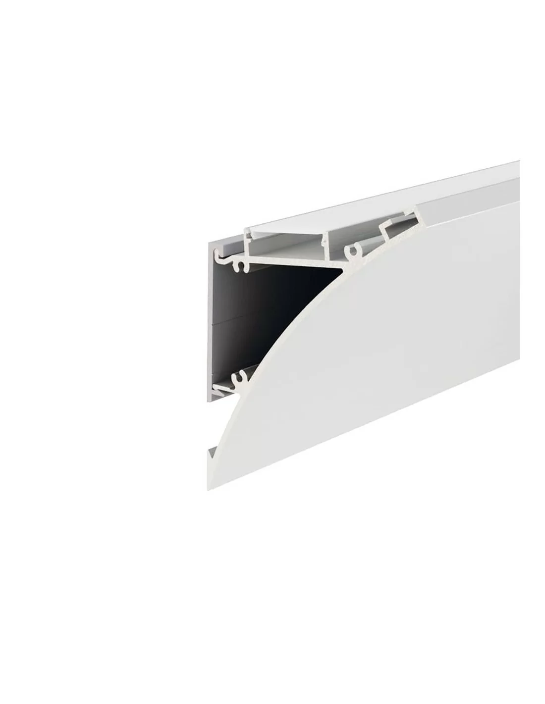 Profilo a parete in alluminio estruso di colore bianco per alloggio strip led, della lunghezza di 2mt, sezionabile.