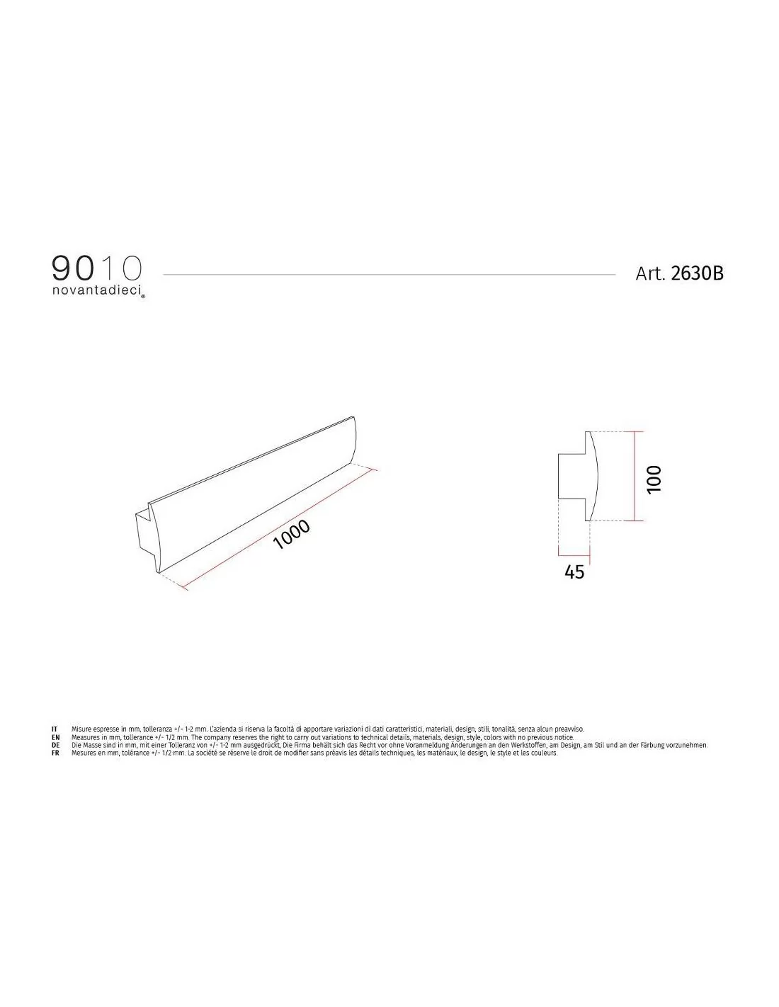 Profilo appoggio a muro verniciabile, doppia emissione, modello 2630B di 9010, dissipatore in Alumite per alloggiamento strisce led.