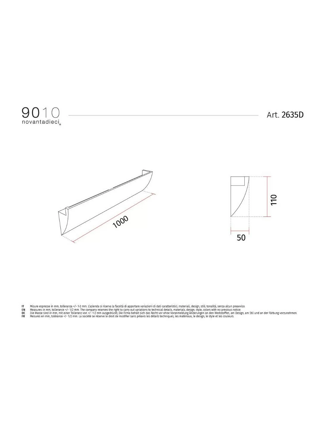 Profilo appoggio a muro verniciabile, singola emissione, modello 2635D di 9010, dissipatore in Alumite per alloggiamento strisce led.