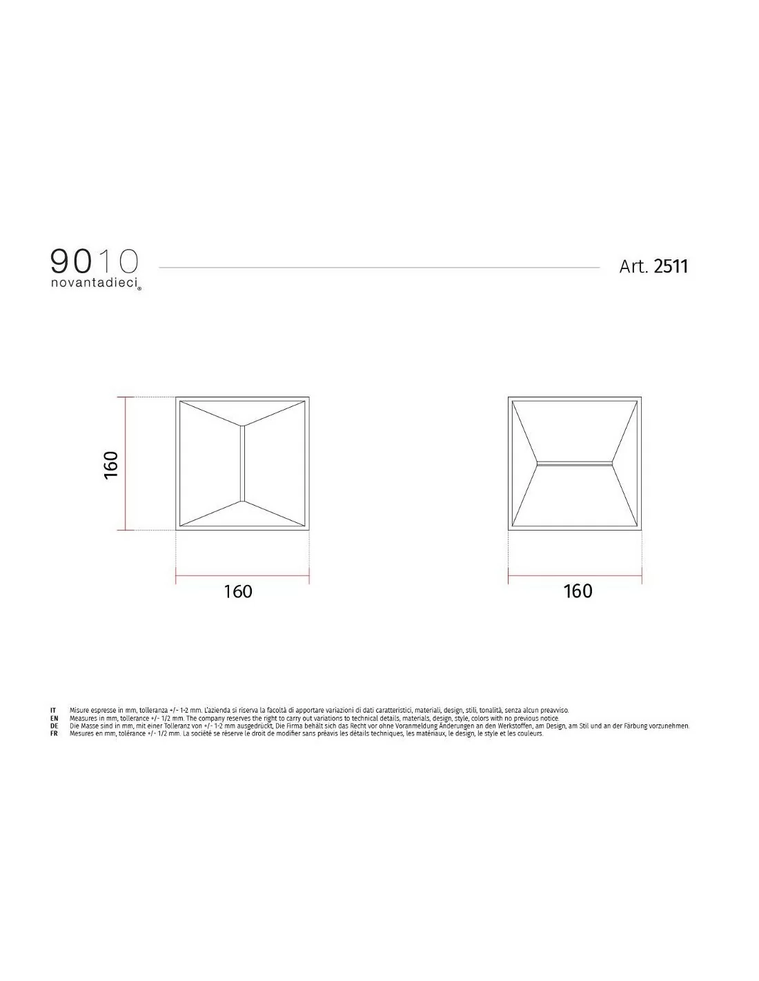 Disponibile nella versione con led a 2700K, 3000K, 4000K (specificare il colore desiderato nelle note d'ordine)