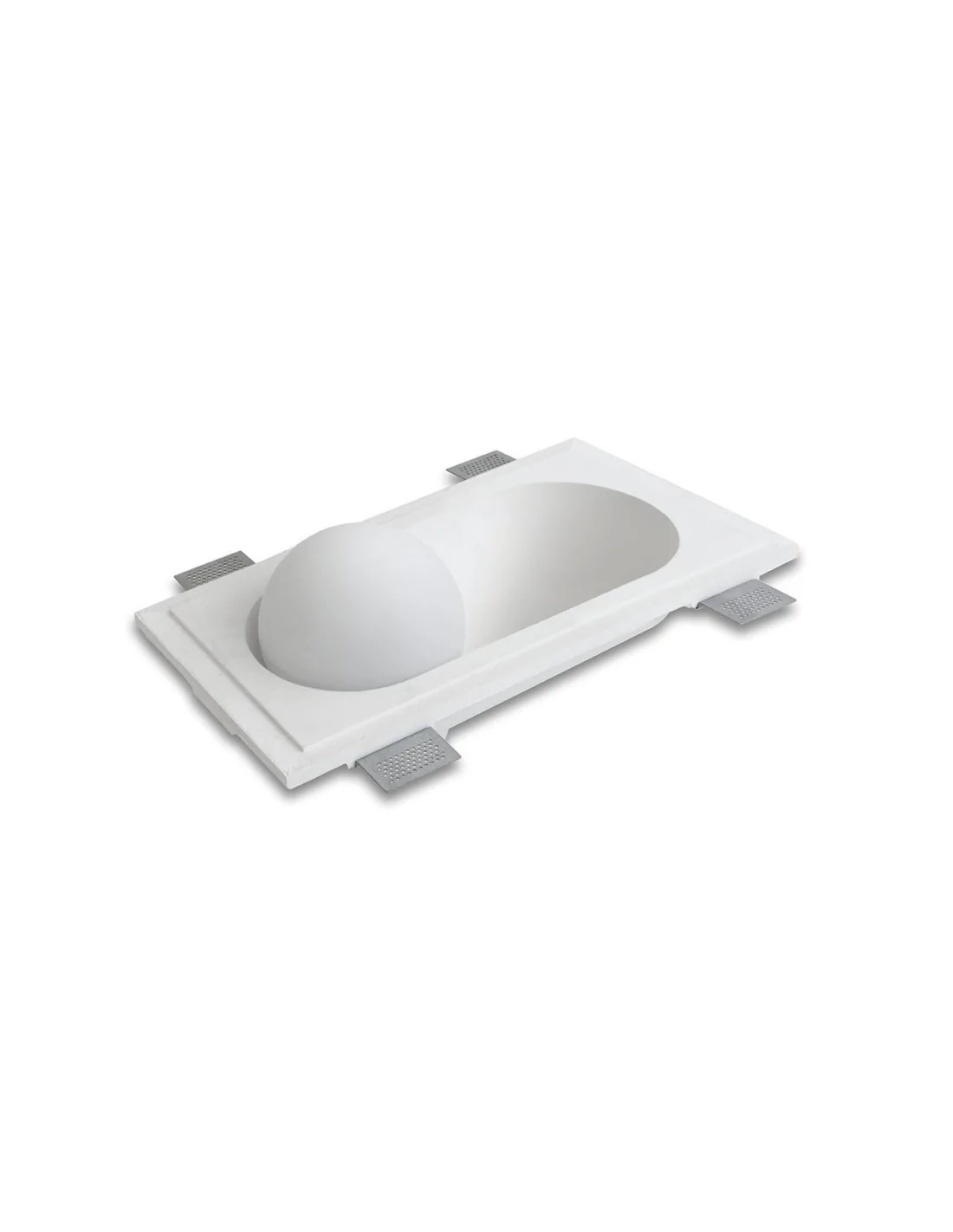 Applique da incasso posizionabile in verticale, orizzontale o obliqua con sfera in vetro che crea un gioco di luce unico, una volta rasata e verniciata si integra perfettamente con la parete e la impreziosisce.