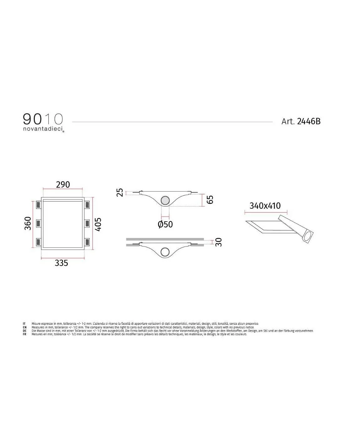 Per eventuale installazione a muro è necessaria contro cassa (vedi prodotti correlati), la lampada è fornita di attacco GU10 per l'installazione di lampadine led
