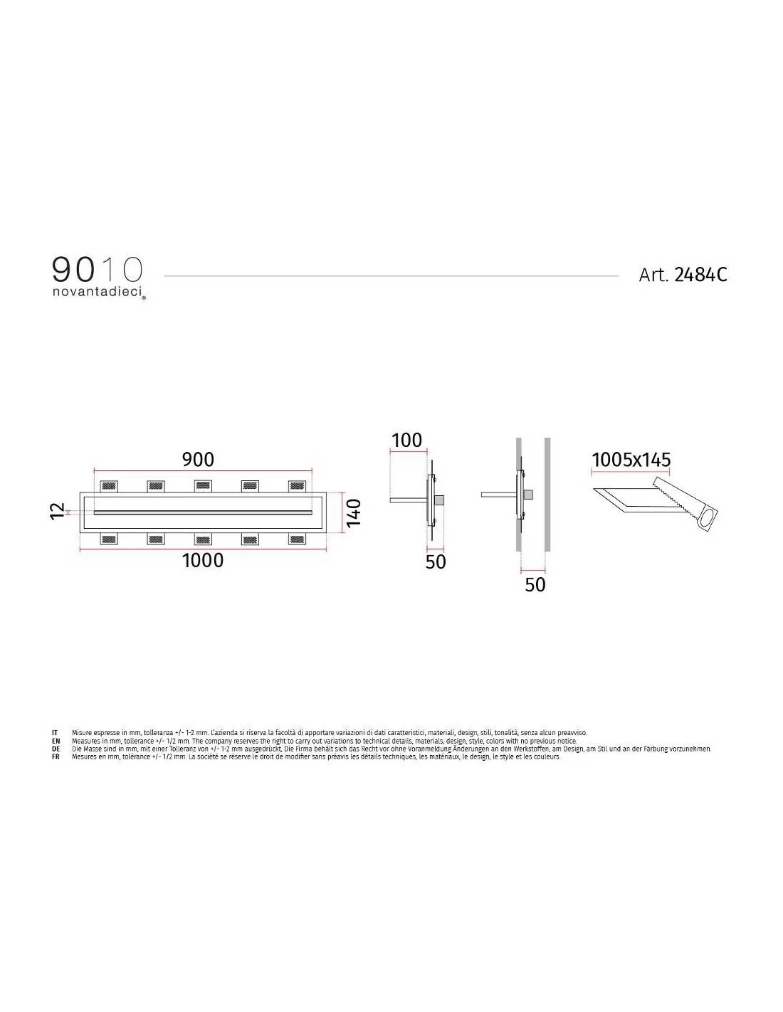 Applique incasso in Cristaly modello 2484C di 9010 con led integrato e mensola in vetro satinato integrata nella struttura e senza sostegni a vista.