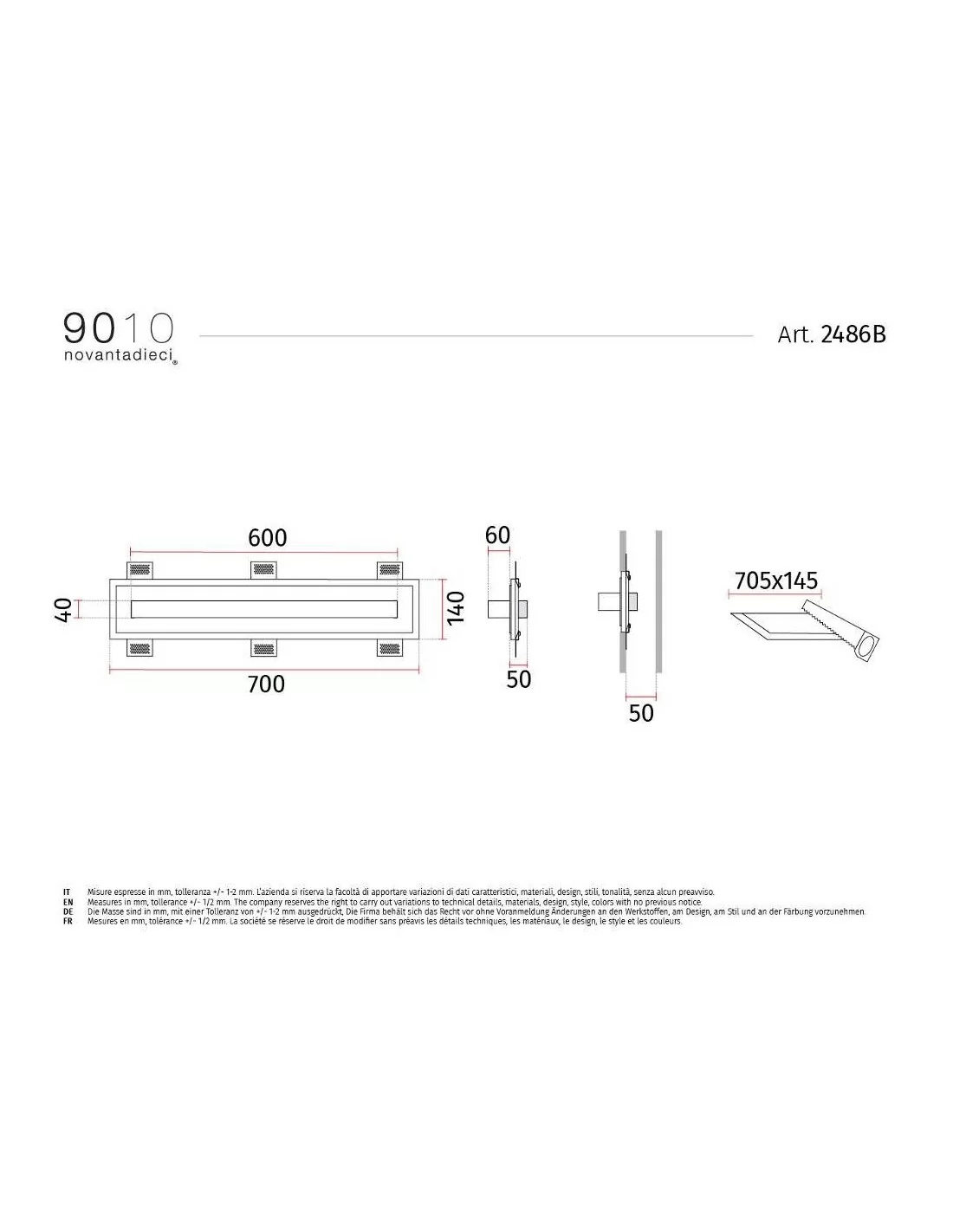 Per incasso a muro è necessaria controcassa (la trovi negli accessori presenti in questa pagina).