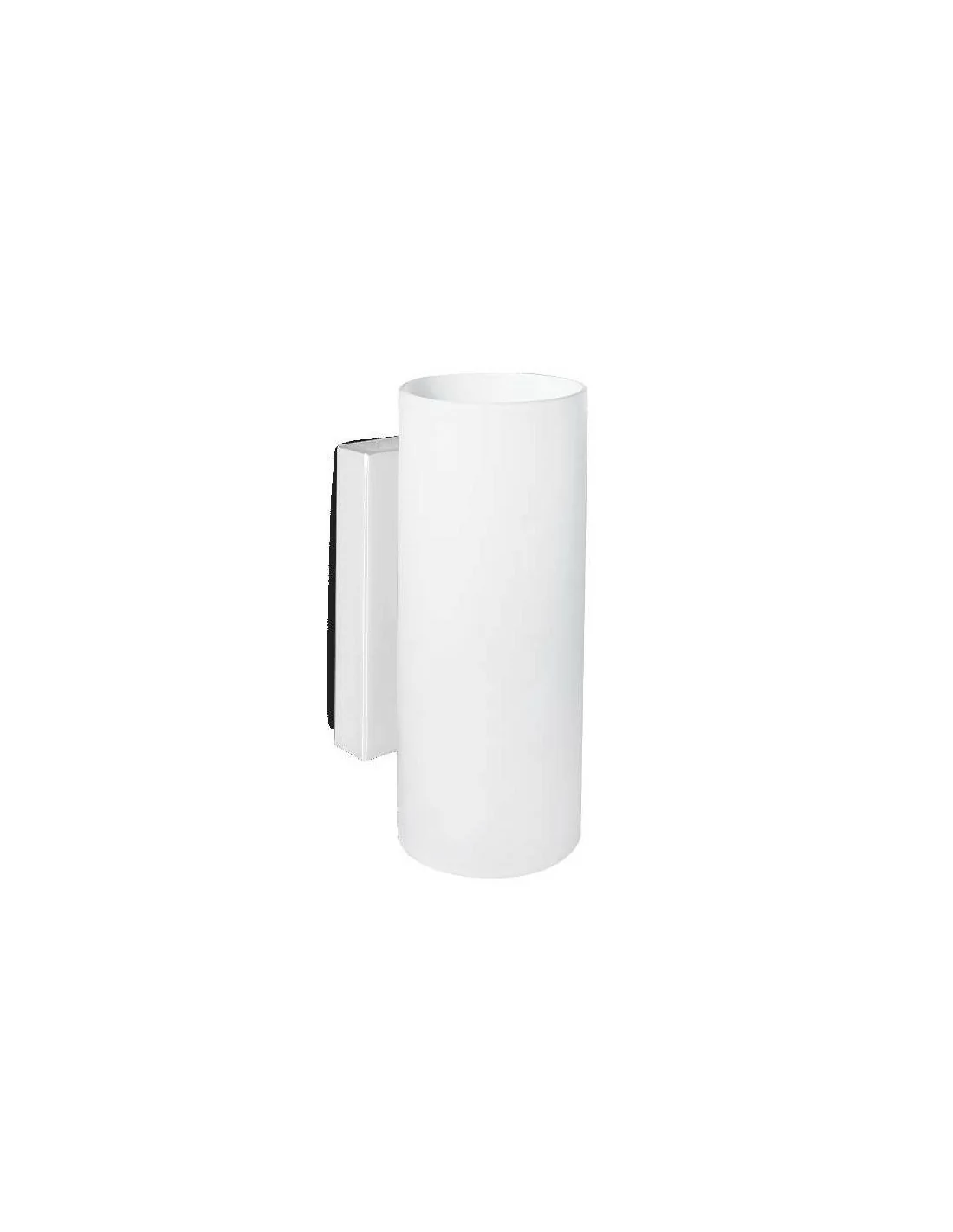 Applique moderna delle dimensioni di 7 cm x 17 cm di altezza, con montatura in metallo rifinito nelle varianti colore: bianco, nero e diffusore in vetro bianco soffiato, incamiciato e acidato.