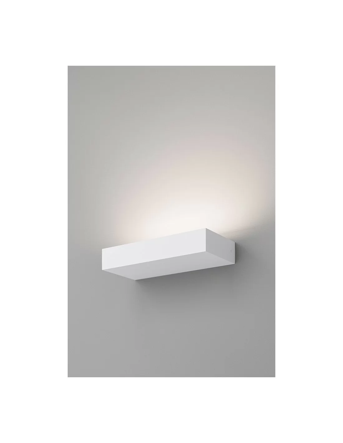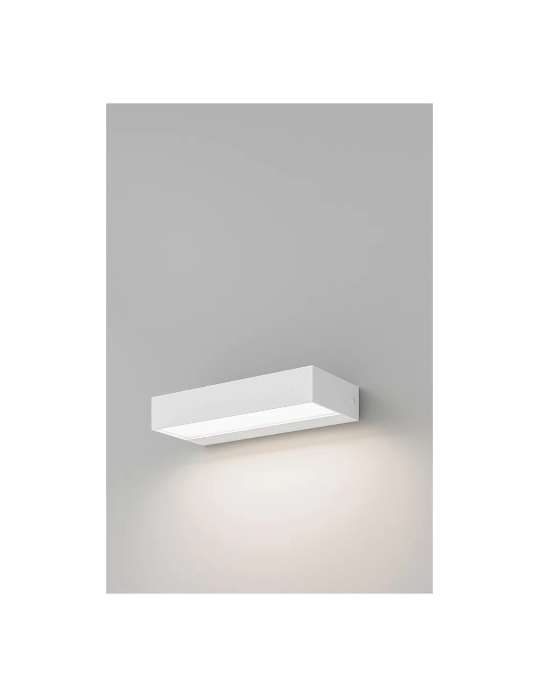 Lampada a muro led in stile moderno, delle dimensioni di 27 cm x 4,8 cm, caratterizzata da una struttura in alluminio satinato nei colori: grafite, argento, nero opaco, bronzo, champagne; che permette la diffusione simmetrica della luce verso l’alto e verso il basso.