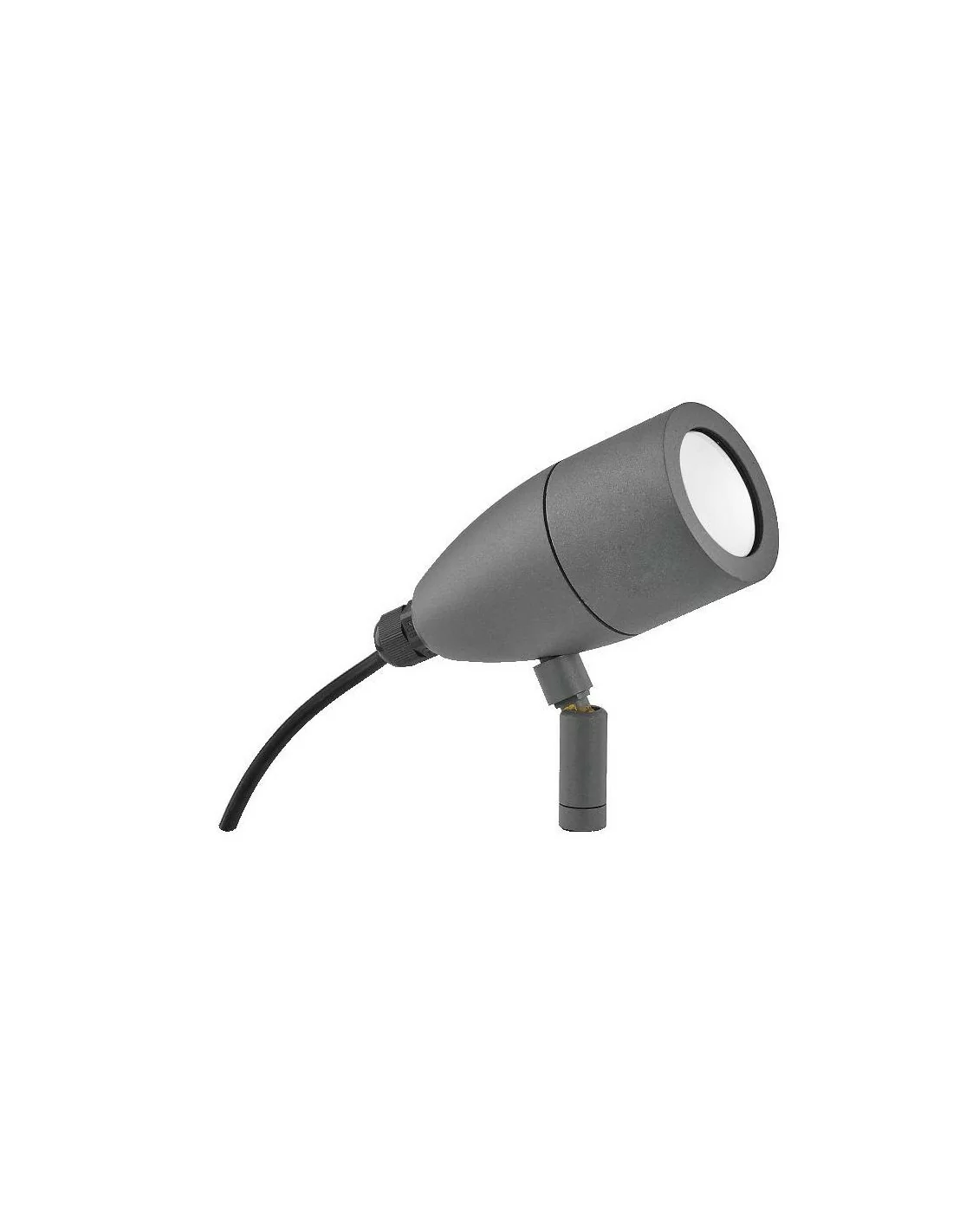 Faretto per esterni delle dimensioni di 6,5 cm x 27,5 cm dia altezza dotato di lancia da interrare, caratterizzato da una montatura in fusione d'alluminio verniciato a polveri nelle seguenti varianti colore: antracite, coffee, nero.