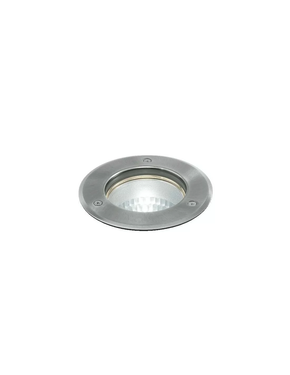 Faretto per esterni delle dimensioni di 15 cm di diametro x 19,5 cm di altezza, con corpo luce esterno in PVC, completo di parabola riflettente in alluminio.
