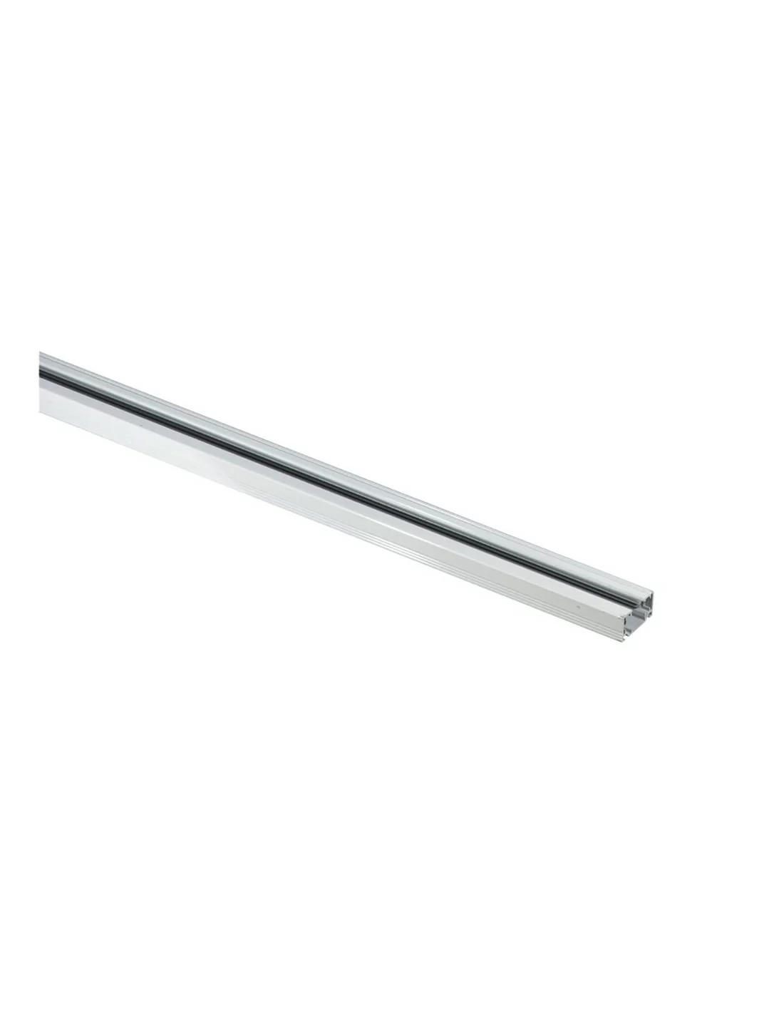 Binario a tensione di rete applicabile a parete o plafone, in lega di alluminio estruso, conduttori in rame alloggiati in estrusi in pvc.
