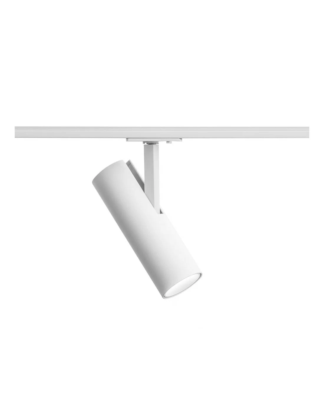 Proiettore LED ad alta efficienza da binario orientabile su due assi: 350° rispetto all’asse orizzontale, 90° rispetto all’asse verticale.