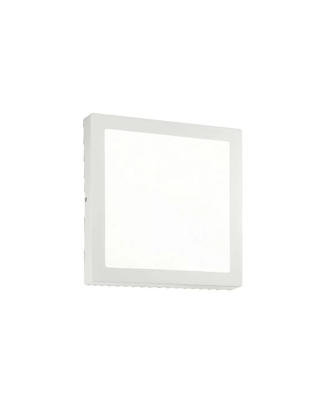 Applique quadrata per ufficio delle dimensioni di 30 cm x 30 cm con montatura in metallo nella finitura di colore bianco ed un diffusore a led in materiale plastico.