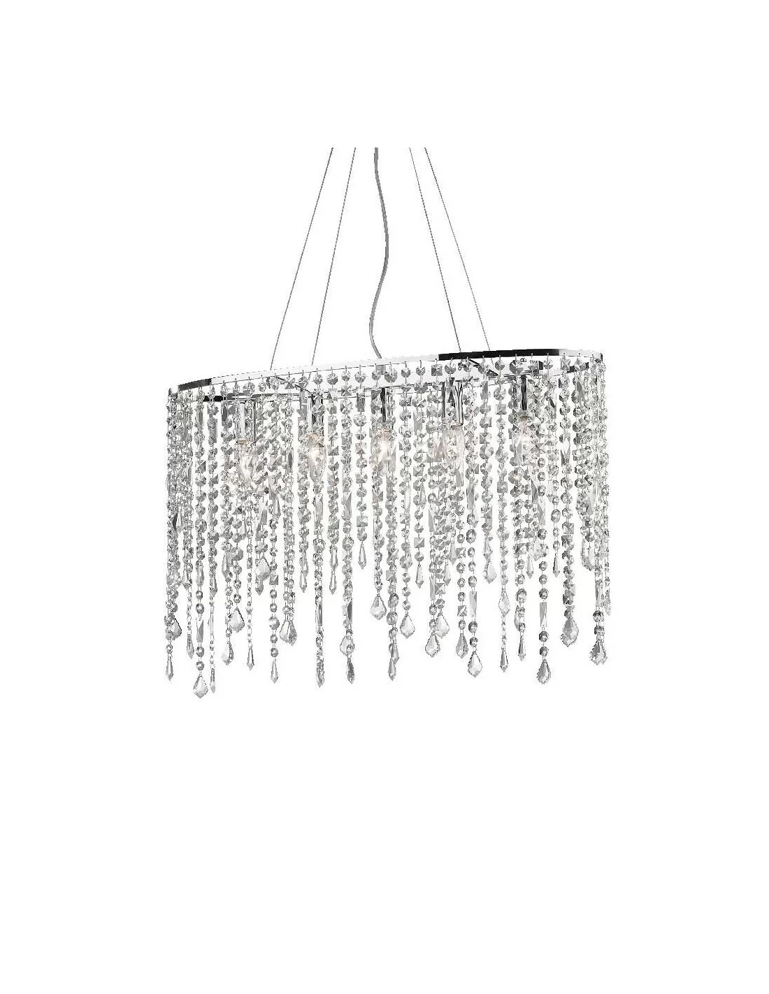 Lampadario a sospensione classico con montatura ellittica in cromo.