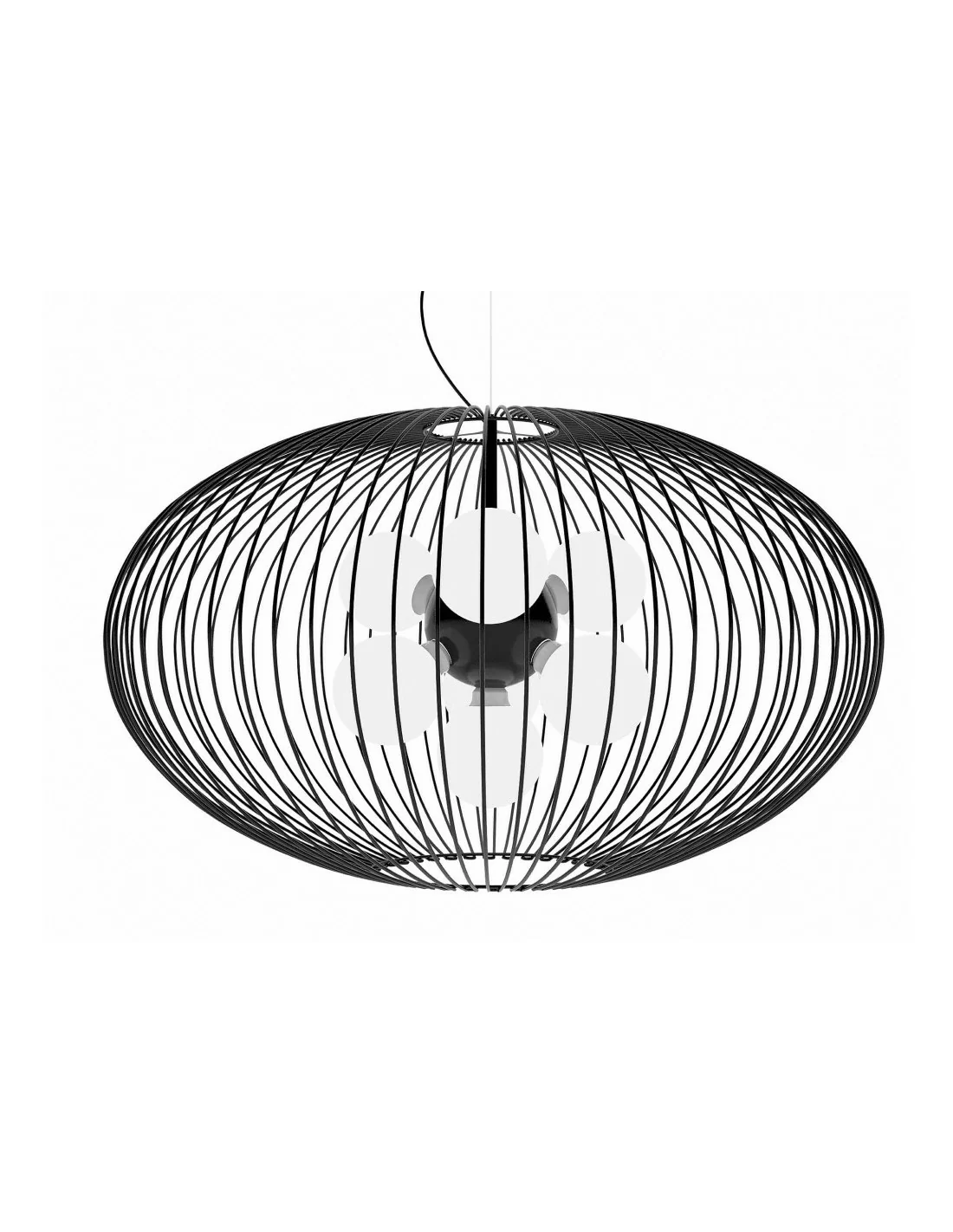 Titti 170/28 è una lampada a sospensione moderna dallo stile minimal realizzata con tondino d'acciaio di 5 mm sapientemente curvato e formato, disponibile nella versione nero opaco o avorio.