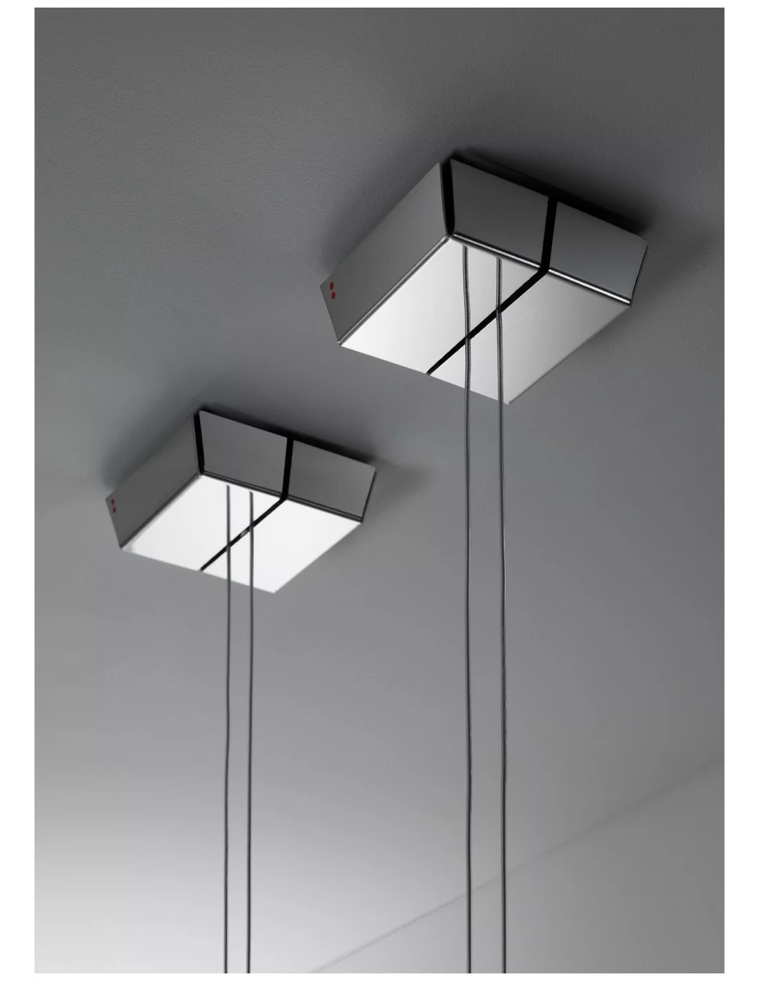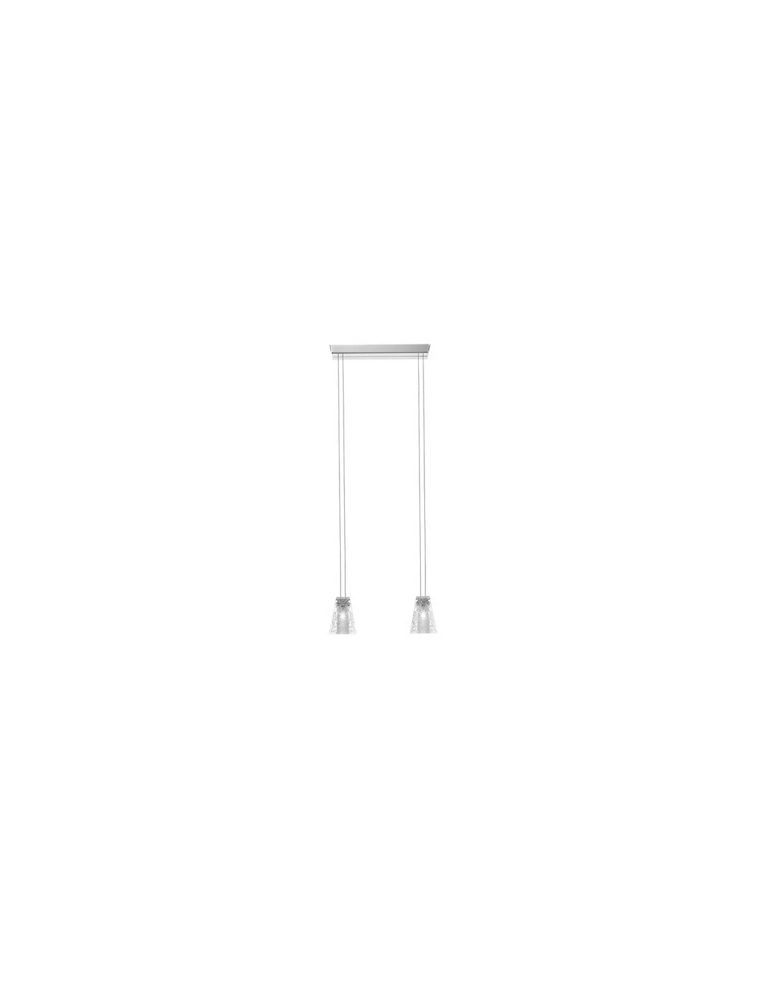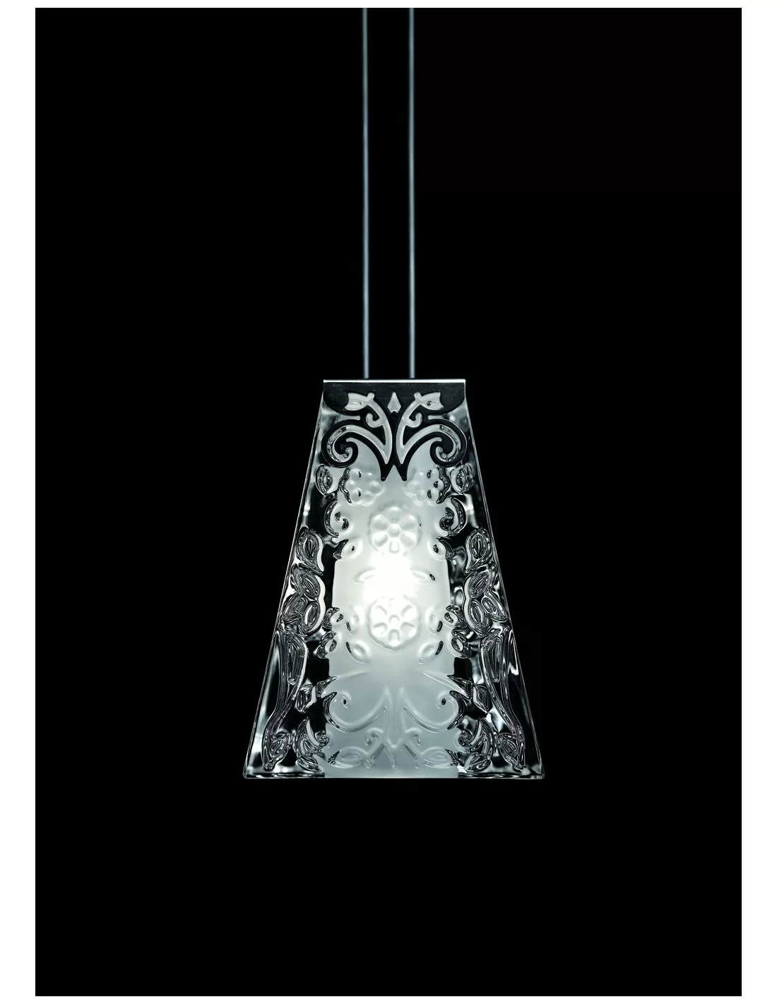 Lampada a sospensione moderna prodotta da Fabbian Illuminazione caratterizzata da diffusori in cristallo lavorato con decorazioni floreali in stile indiano e parti metalliche in cromo.