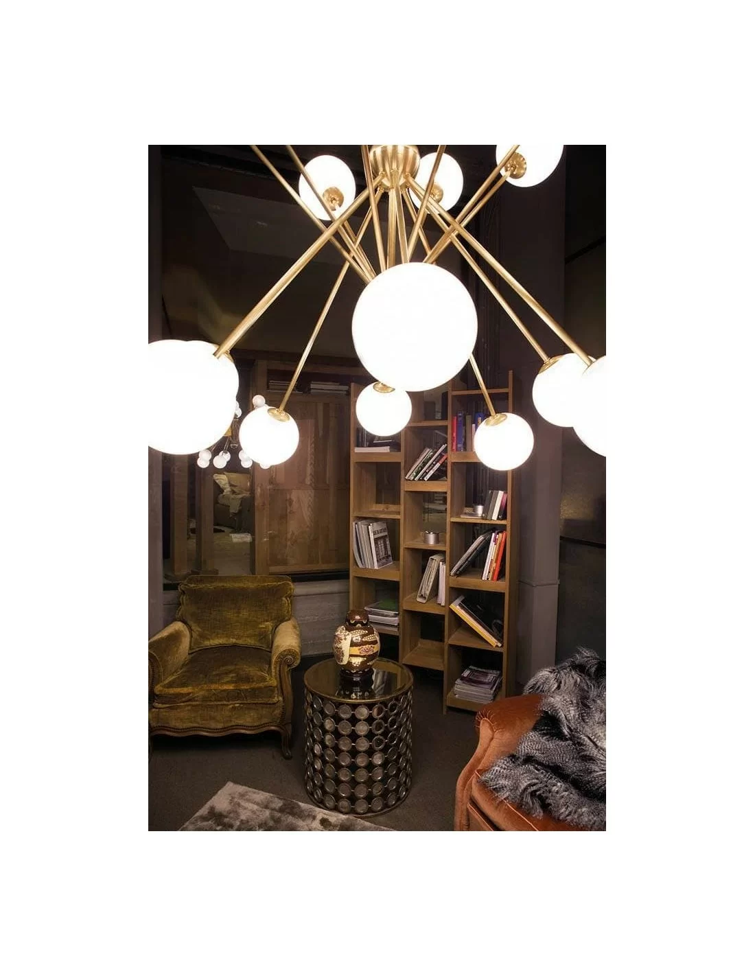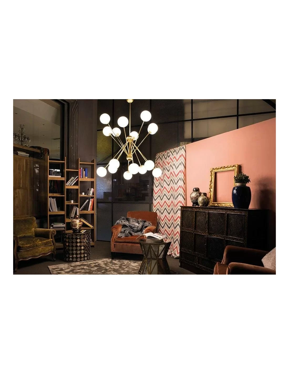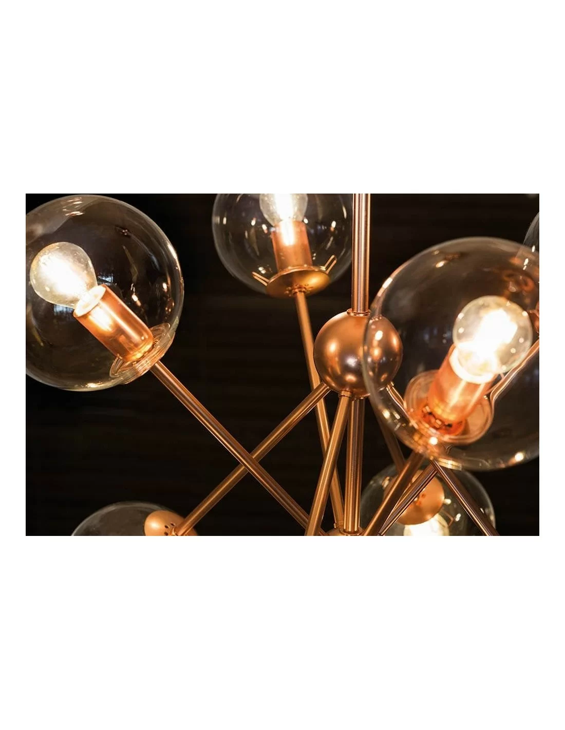 Lampadario moderno delle dimensioni di 98 cm di altezza x 80 cm di diametro,con vetro nelle varianti colore:trasparente, ambra, tabacco, bianco satinato.