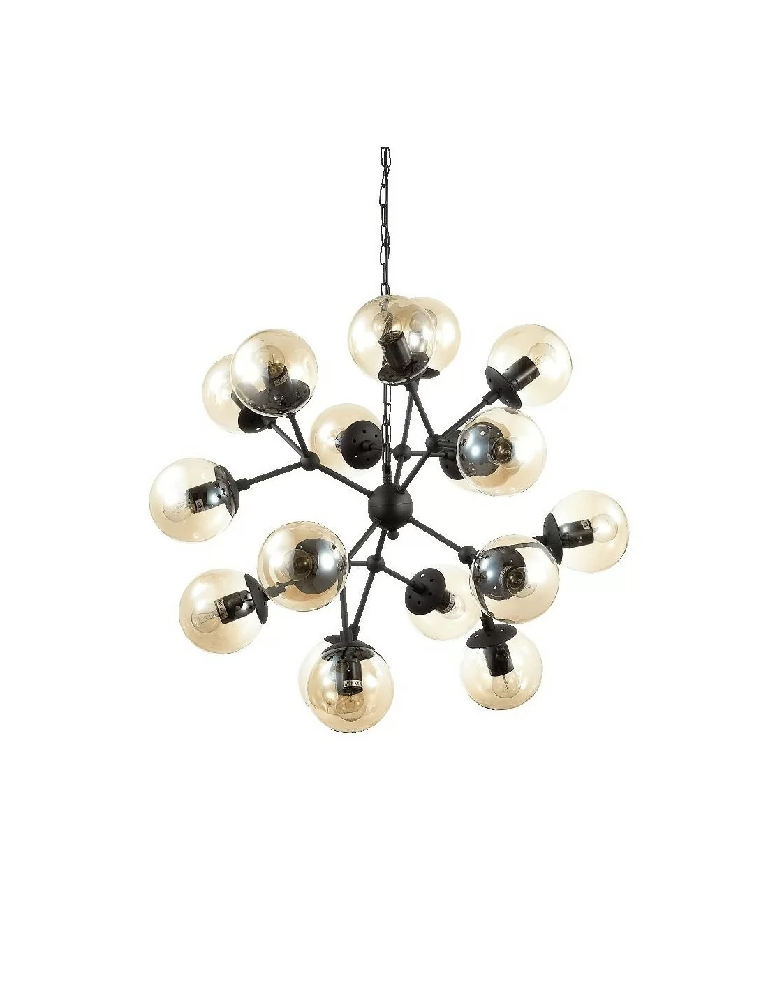 Lasciati incantare dall'eleganza senza tempo del lampadario moderno Ideal Lux Kepler SP18. La sua catena e montatura in metallo verniciato nero opaco si sposa perfettamente con i diffusori in vetro soffiato trasparente ambrato, creando un'atmosfera di raffinata bellezza.
