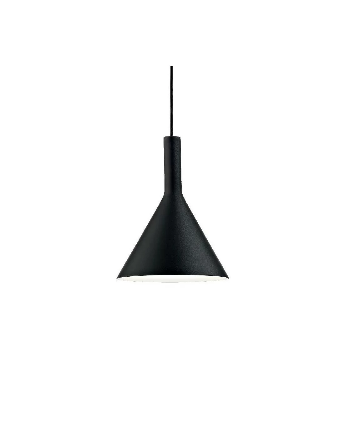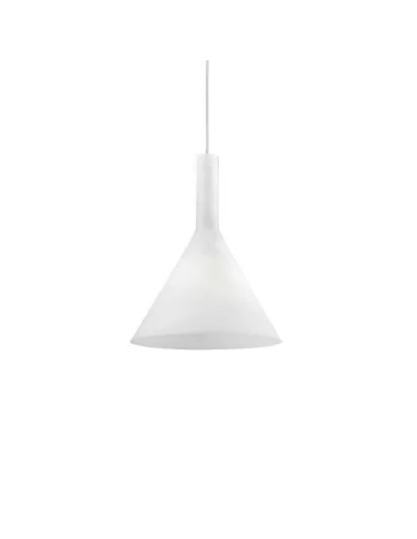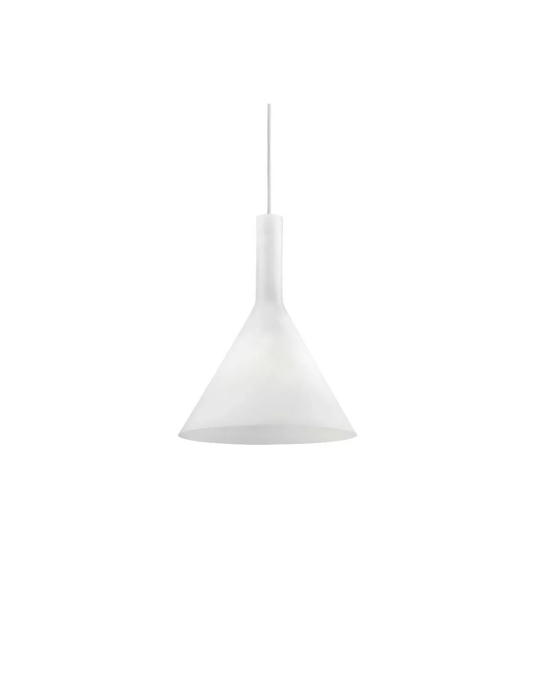 Lampadario moderno per soggiorno delle dimensioni di 20 cm di diametro x 226 cm di altezza (cavo incluso), con diffusore in vetro soffiato incamiciato e acidato nelle varianti colore: bianco, nero.
