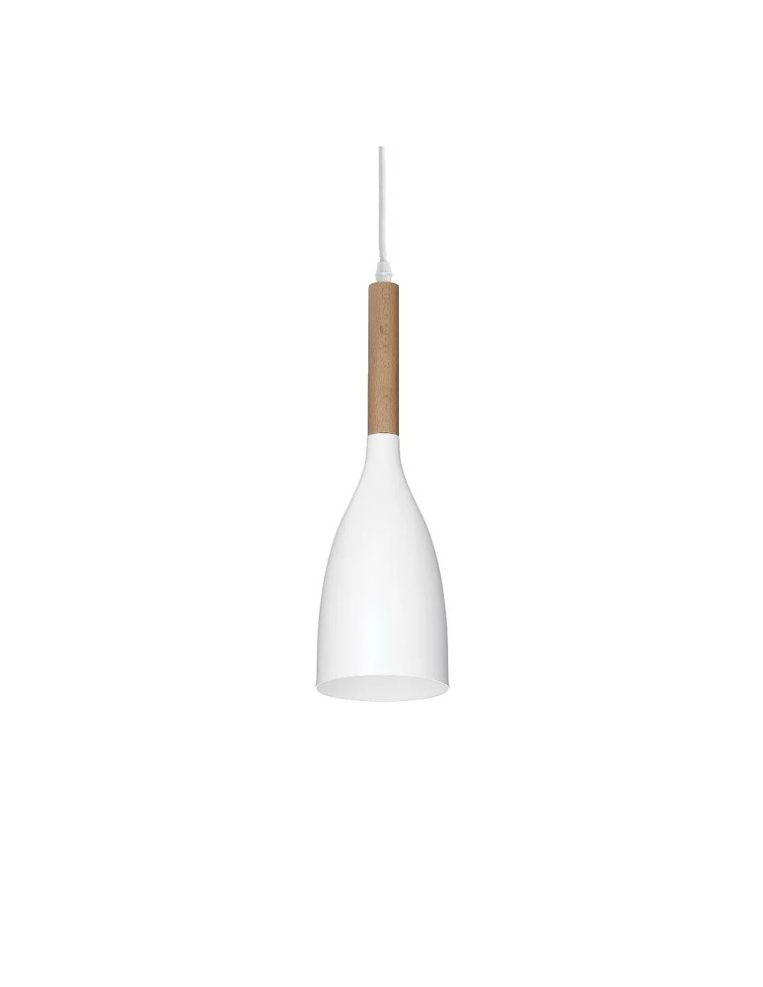 Lampadario dallo stile moderno delle dimensioni di 11 cm x 144 cm ( cavo incluso), con rosone e diffusore in metallo verniciato opaco nelle varianti colore: bianco, nero e con dettaglio in legno naturale che rendono unico nella sua semplicità.