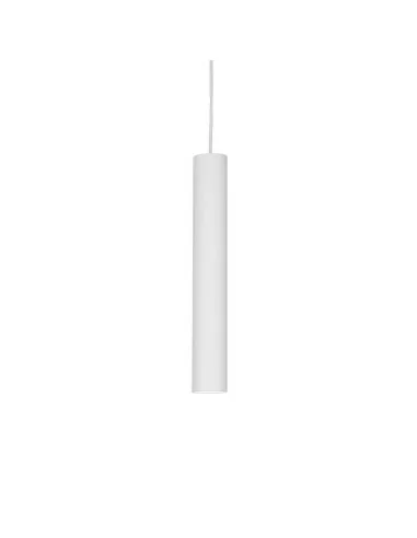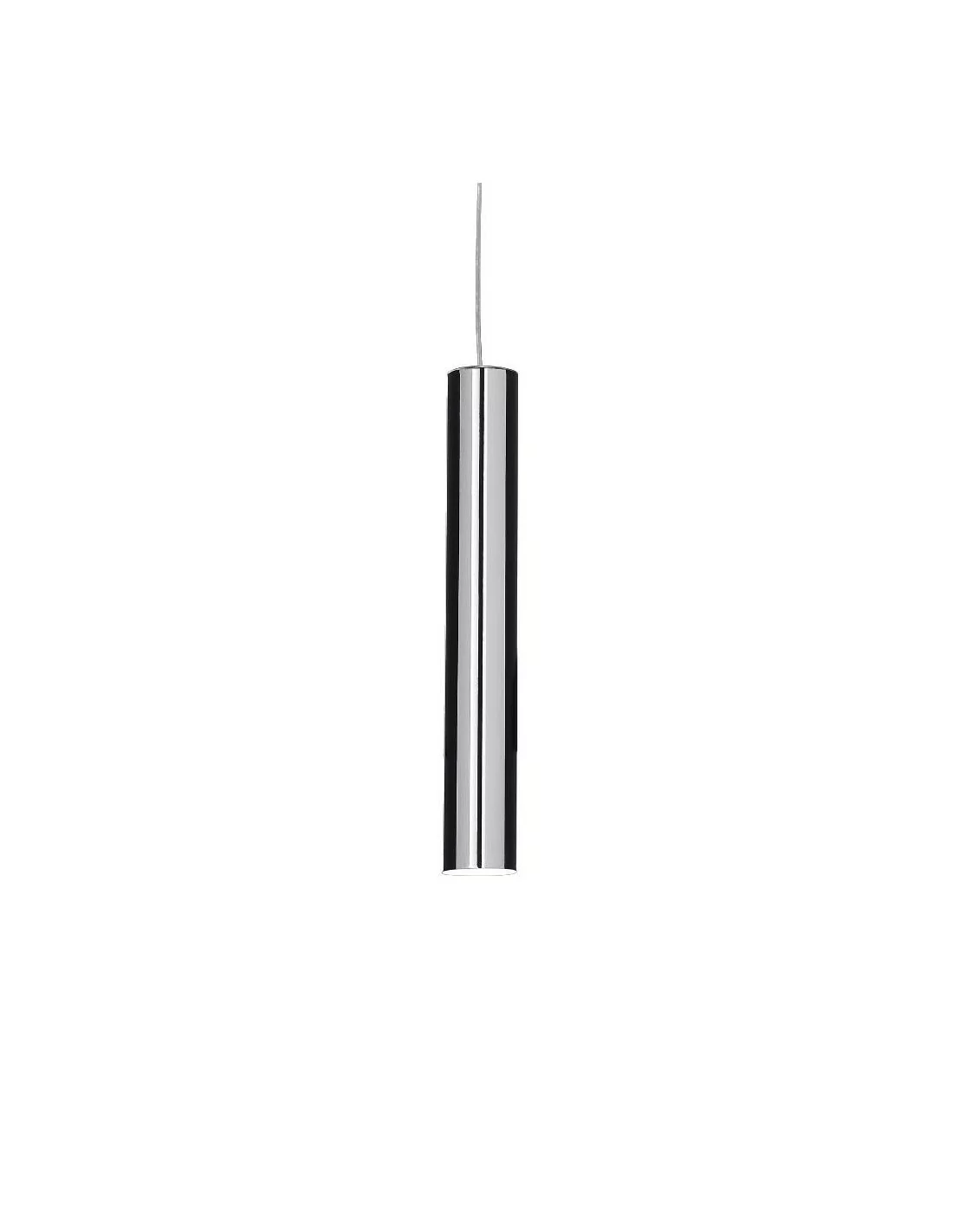 Lampadario moderno dalla forma cilindrica ,delle dimensioni 6 cm di diametro x 240 cm di altezza ( cavo incluso), caratterizzato esclusivamente da un rosone e un diffusore in metallo disponibile nelle seguenti varianti colore: bianco, argento, brunito, corten, cromo,ottone, trasparente, nickel, nero, oro, rame.