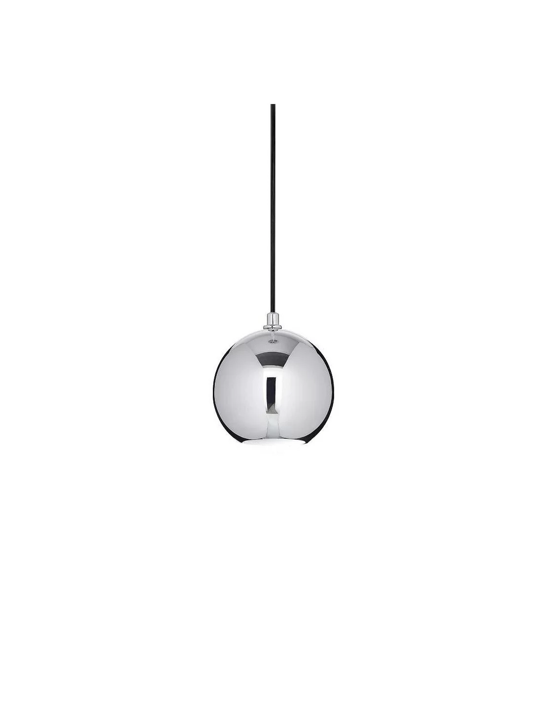 Lampadario moderno delle dimensioni di 12 cm di diametro x 120 cm di altezza ( cavo incluso), con montatura e diffusore sferico in metallo rifinito nelle varianti colore: cromo, bianco, nero.