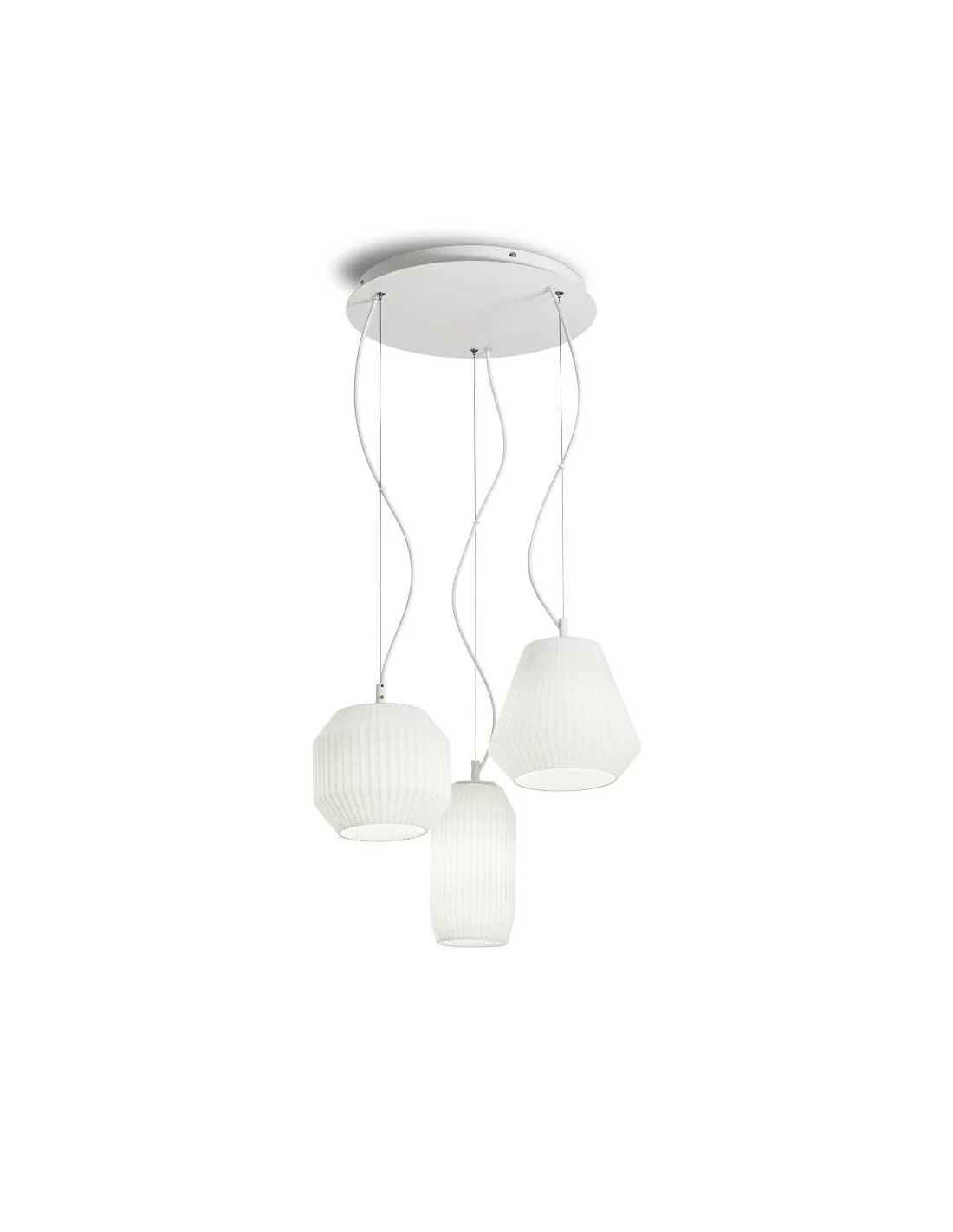L'Origami SP3 di Ideal Lux è un lampadario moderno e innovativo che aggiunge un tocco di eleganza e raffinatezza a qualsiasi ambiente. La montatura in metallo verniciato bianco opaco garantisce una perfetta aderenza alla struttura, mentre i diffusori in vetro bianco soffiato e acidato con effetto piegature in rilievo creano un'atmosfera romantica e accogliente.