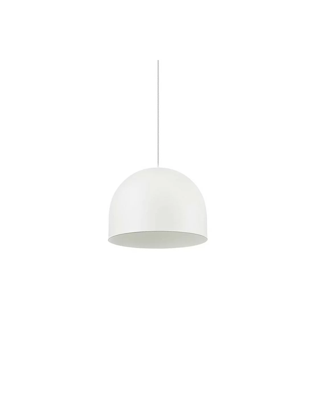 Lampadario dallo stile moderno dalla forma semicircolare delle dimensioni di 13,5 cm di diametro x 592 cm (cavo incluso) con diffusore e dettagli in metallo verniciato nelle varianti colore: bianco opaco, nero opaco