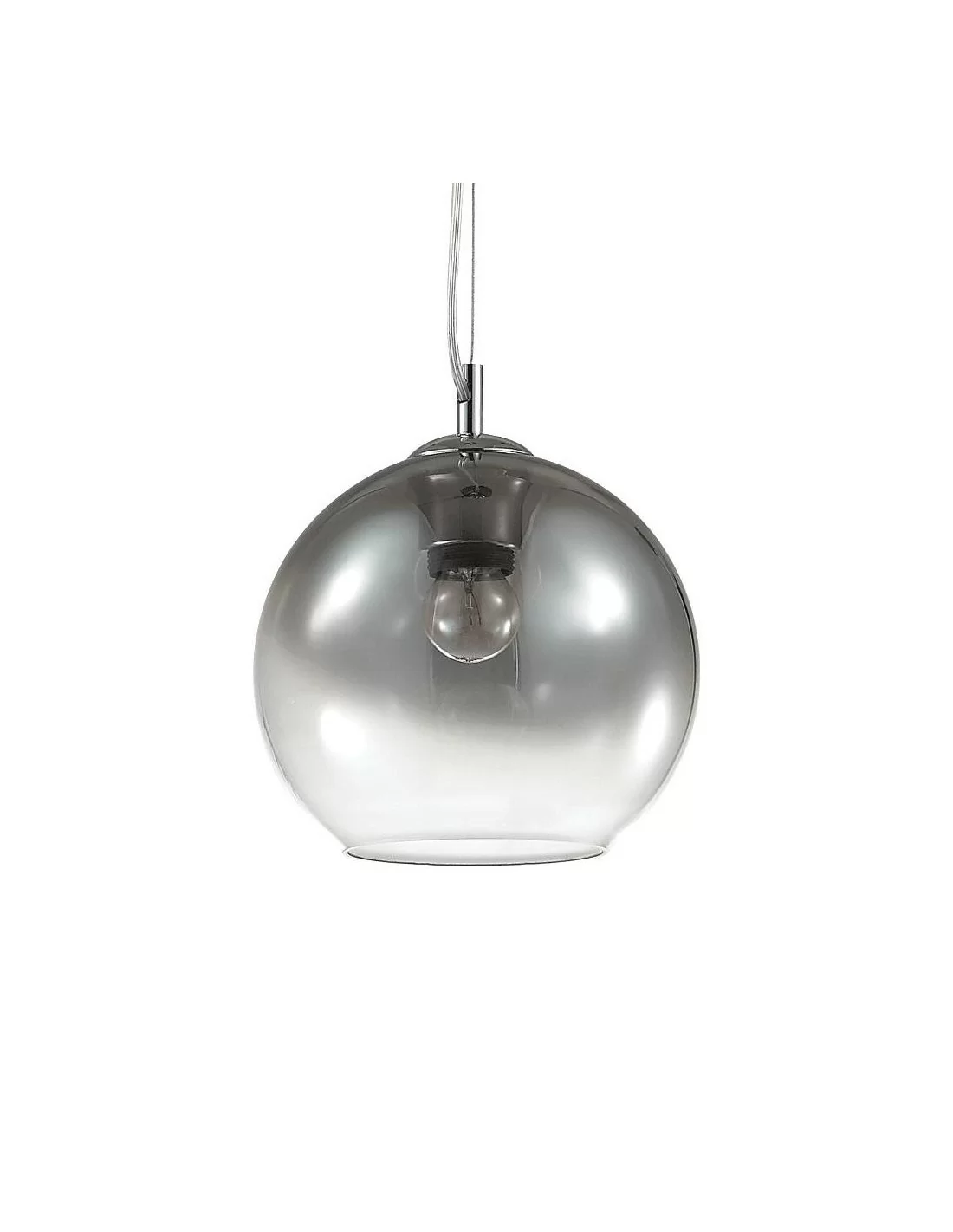 Lampadario dallo stile moderno delle dimesioni di 20 cm di diametro x 116 cm ( cavo incluso) con diffusore in vetro soffiato disponibile nelle varianti colore:cromo, cromo sfumato, fumé, rame.
