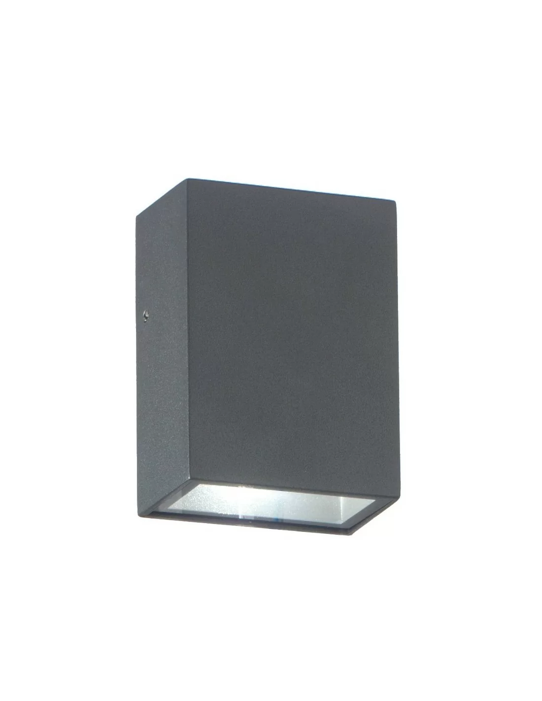 Applique moderna da esterno con struttura in pressofusione di alluminio verniciato con polveri a elevata resistenza ai raggi UV, color antracite.