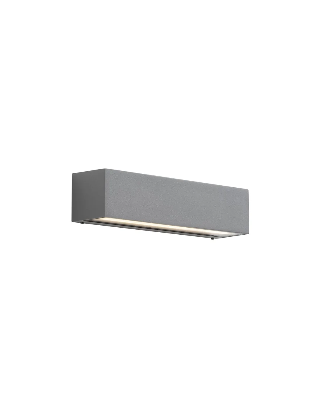 Applique moderna da esterno doppia emissione (luce verso il basso e verso l'alto) di Rossini Illuminazione con struttura in pressofusione di alluminio verniciato con polveri a elevata resistenza ai raggi UV.