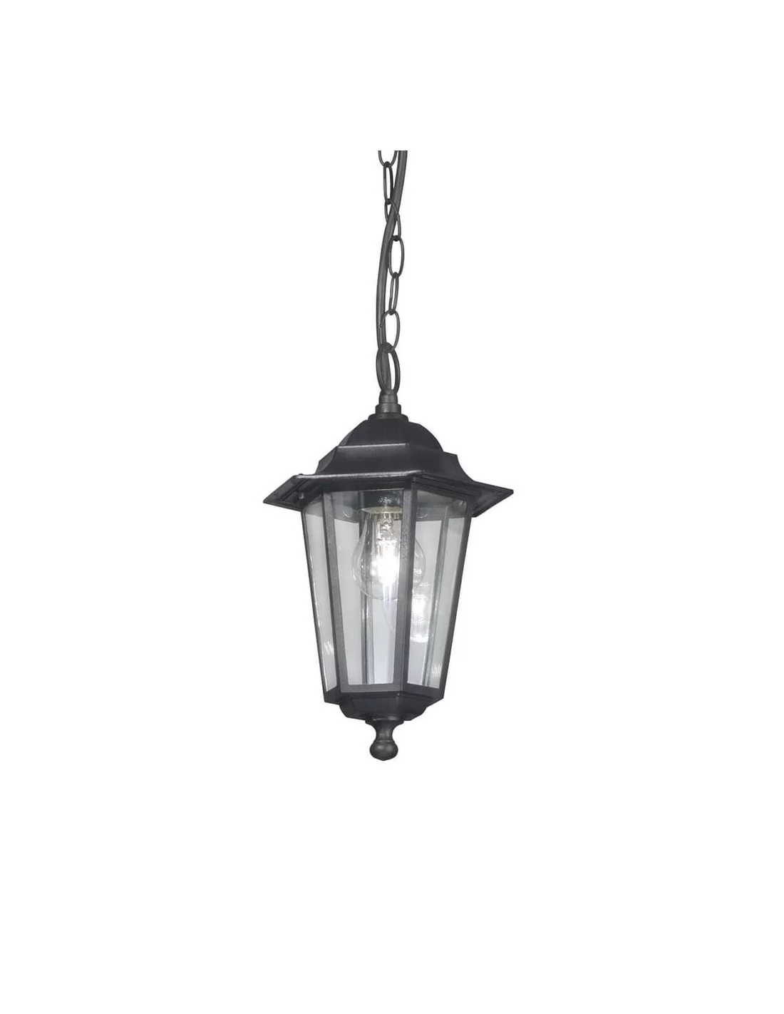 Lampadario classico dalla forma a lanterna, delle dimensioni di 19,5cm x 92cm (lunghezza cavo incluso), con struttura in fusione di alluminio laccato disponibile nelle colorazioni: nero, bianco.
