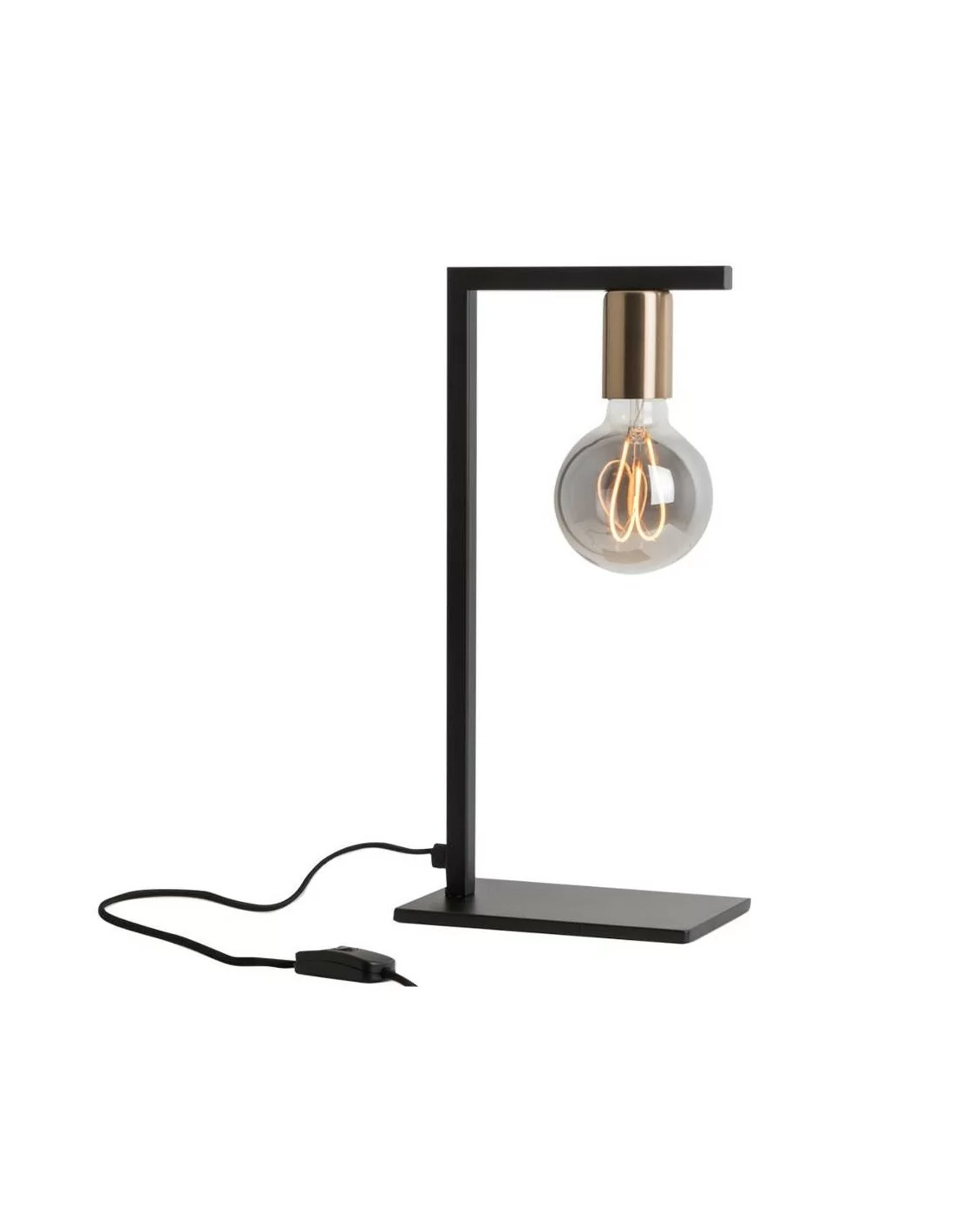 Abat jour in metallo su cui poggia un portalampada, con lampadina a vista che consente di montarne una a scelta.