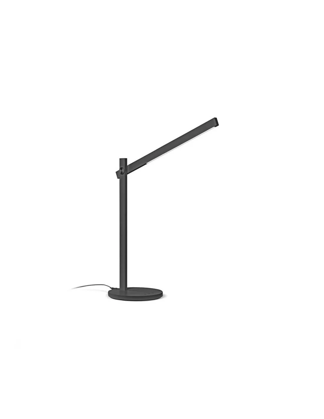 Questa lampada, dallo stile moderno e stilizzato, è caratterizzata da una montatura in alluminio verniciato opaco nelle finiture: nero, bianco, mentre la base è rivestita in plastica con dimmer.