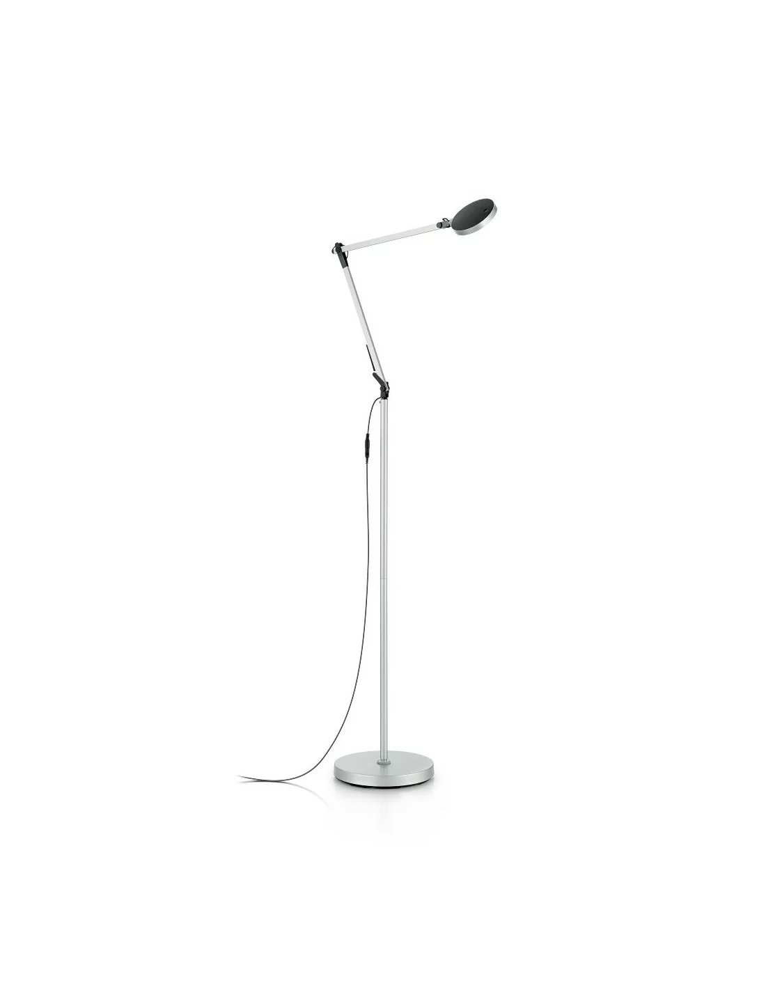 Questa piantana a stelo led dal design moderno, delle dimensioni di 67 cm x 145 cm, si presenta con braccio in alluminio e plastica snodato con cavo a vista in pvc nelle varianti colore: alluminio, bianco, nero.