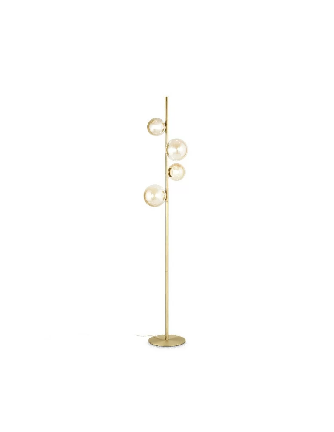 Questa piantana dal design classico, dimensioni di 25 cm x 164 cm, è caratterizzata da una montatura in metallo e diffusori in vetro ambra.