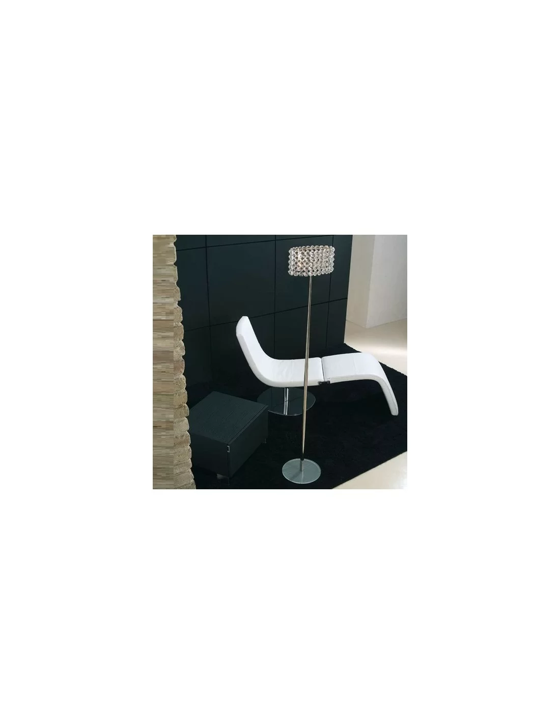 Lampada da terra con diffusore realizzato con cristalli ottagonali trasparenti.