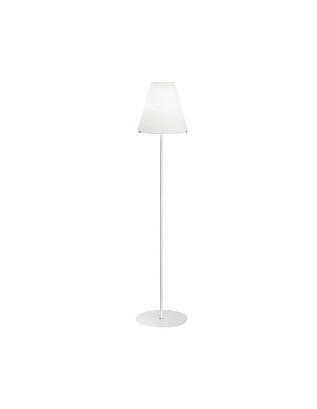 Lampada da terra con struttura in finitura bianca opaca, dimensioni di 32 cm x 190 cm di altezza, caratterizzata da un diffusore a triplo strato di vetro soffiato bianco satinato.