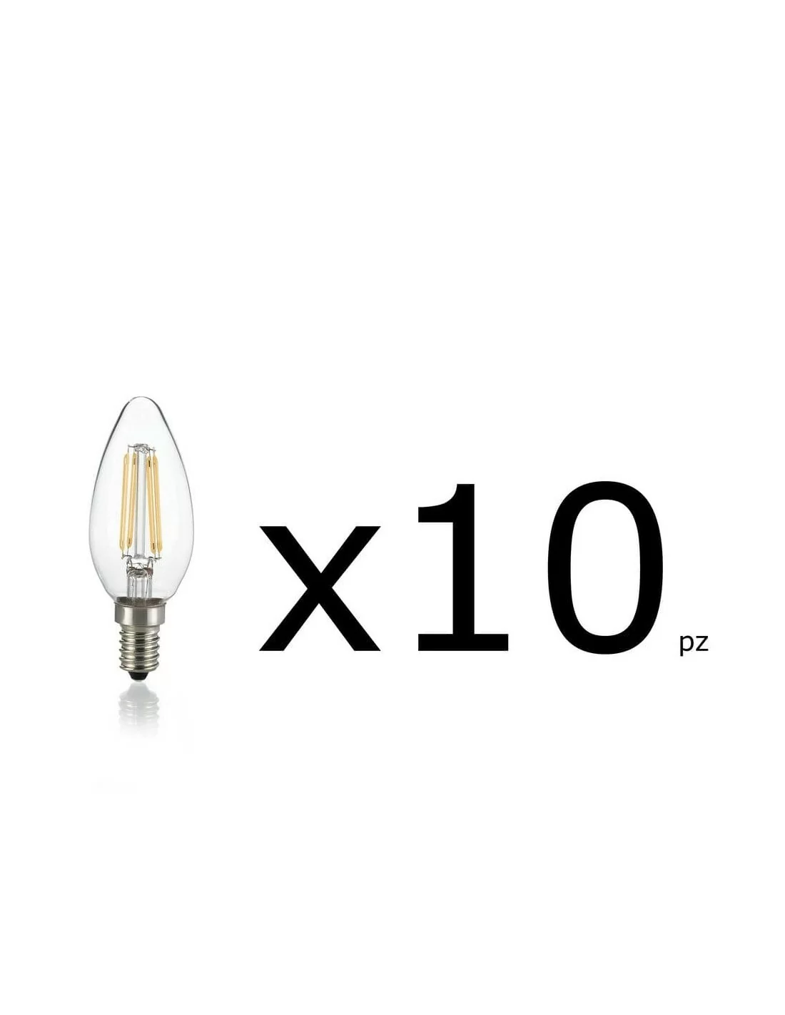 Confezione da 10 lampadine led E14 4W diIdeal Lux, flusso luminoso di 320 lm, colore luce 3000k.