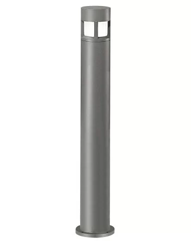 Lampada da terra per esterno di Rossini Illuminazione realizzata in pressofusione di alluminio verniciato a polveri di poliestere ad elevata resistenza ai raggi ultravioletti, diffusore in vetro satinato, parabola riflettente in alluminio.