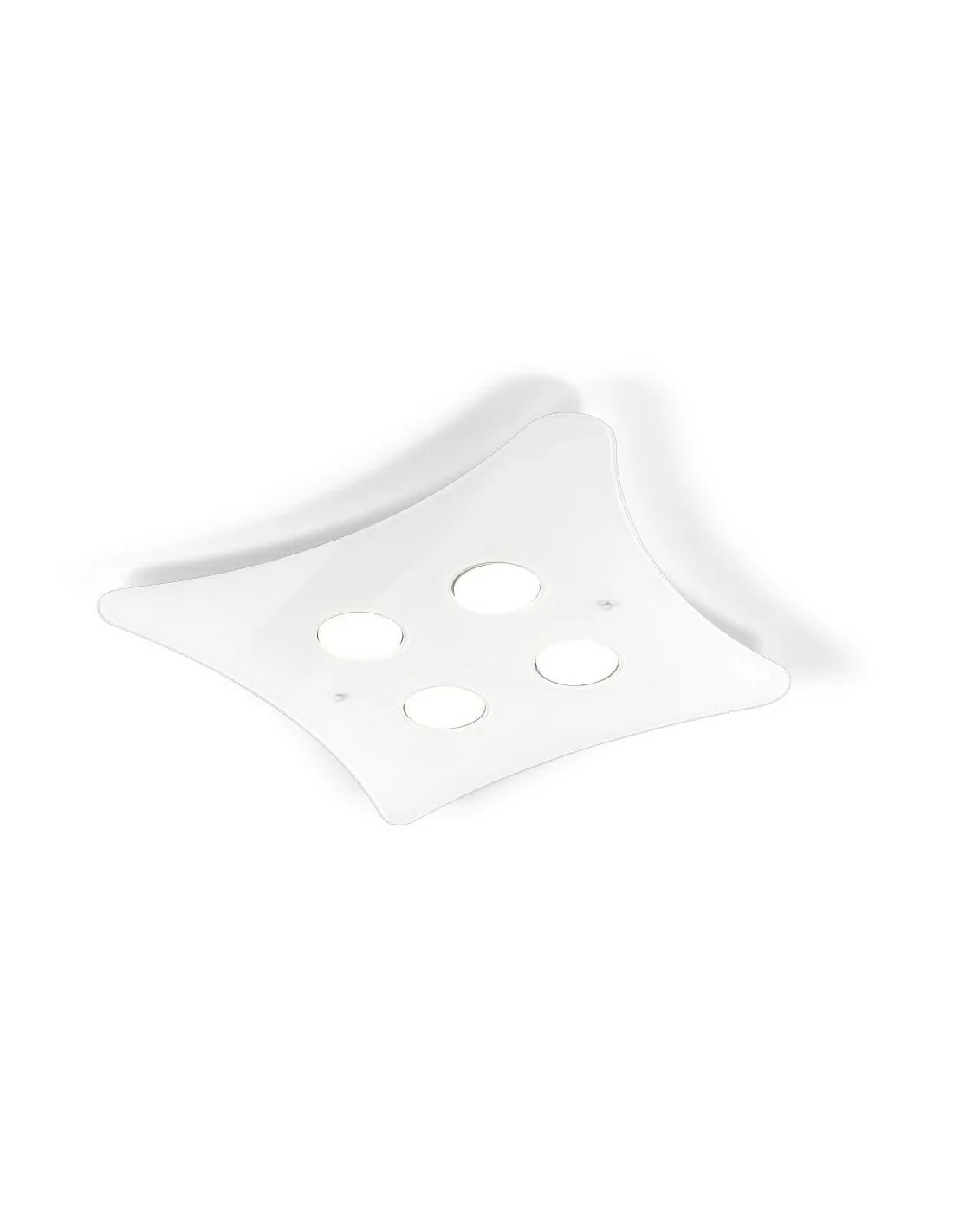 Plafoniera moderna Manta di Metal lux, struttura in metallo bianco, diffusore in vetro, disponibile in vetro bianco o vetro nero.