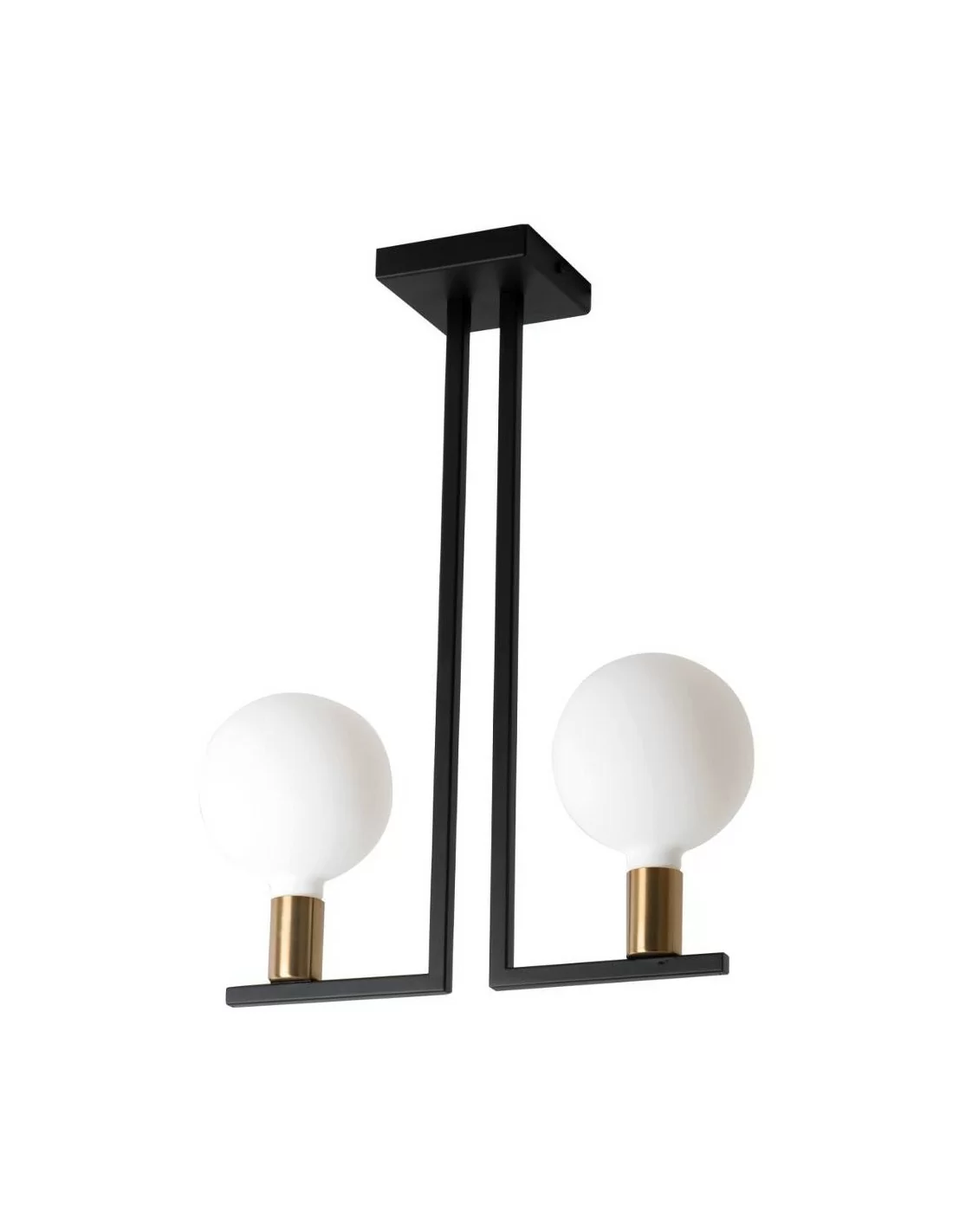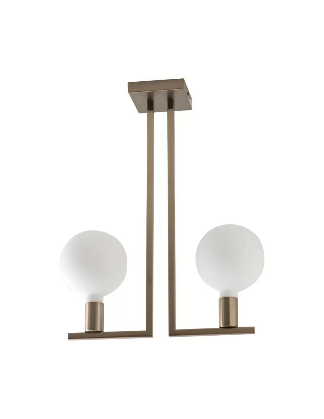 Lampada da soffitto composta da una struttura in metallo su cui poggiano due portalampada.