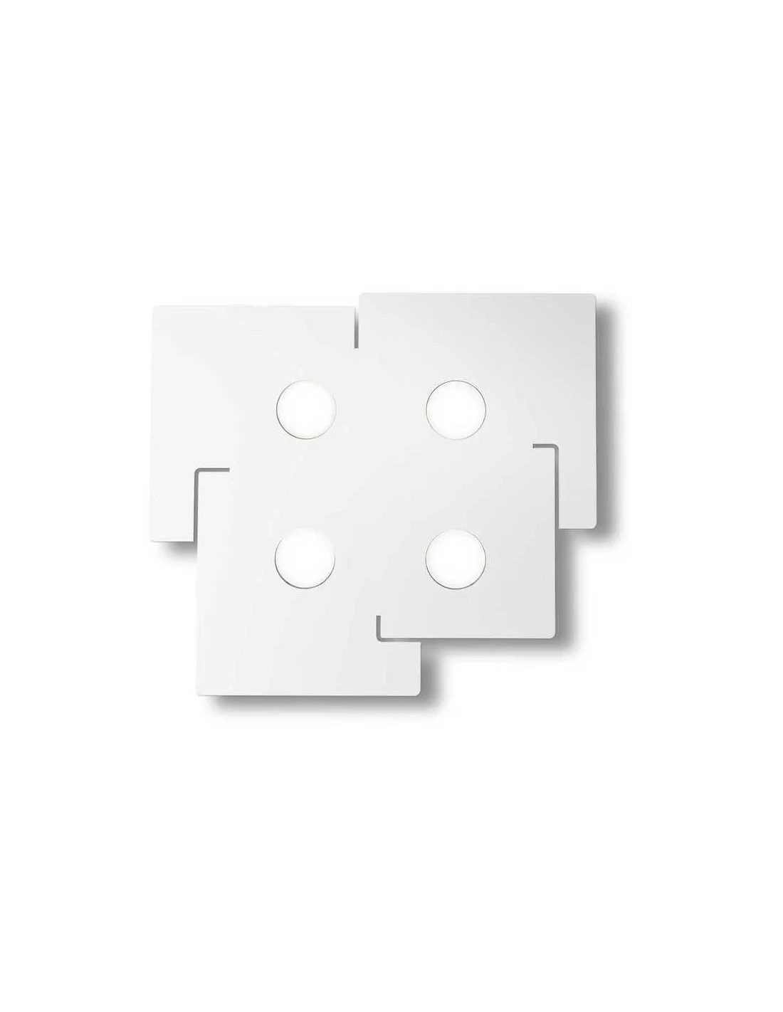 Questa plafoniera a 4 luci dallo stile moderno, dimensioni di 56 cm x 51 cm, ha una base in metallo sagomata a laser con verniciatura nella colorazione bianco opaco,