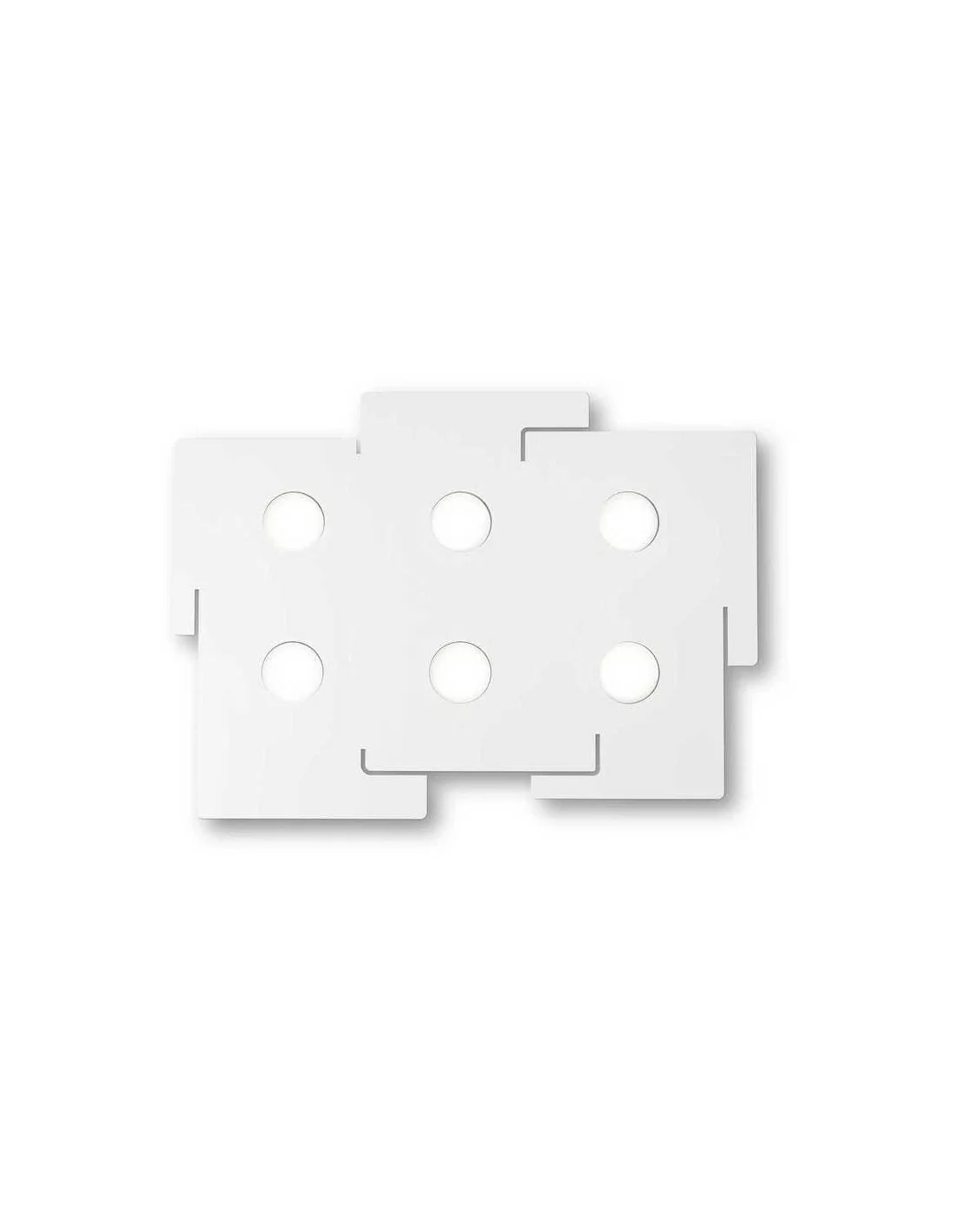 Questa plafoniera dallo stile inconfondibilmente moderno a 6 luci , dimensioni di 71 cm x 52,5 cm, ha una base in metallo sagomata a laser con verniciatura nella finitura bianco opaco,