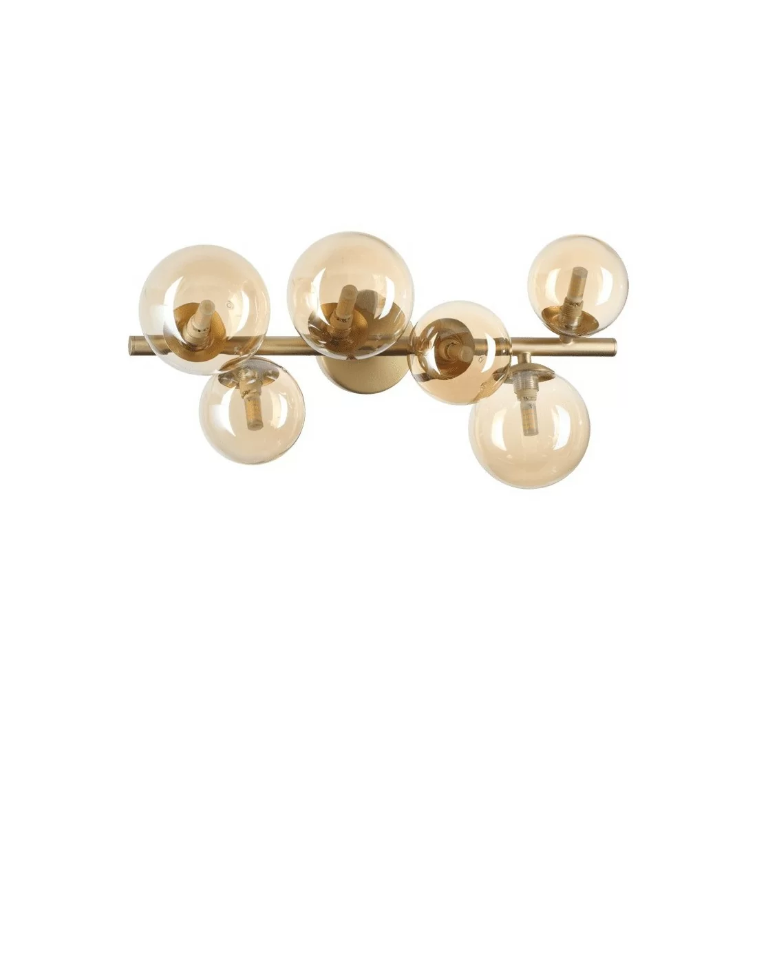 Questa lampada da soffitto classica, dimensioni di 49 cm x 19,5 cm, è caratterizzata da una montatura in metallo con struttura lineare e diffusori in vetro ambra.