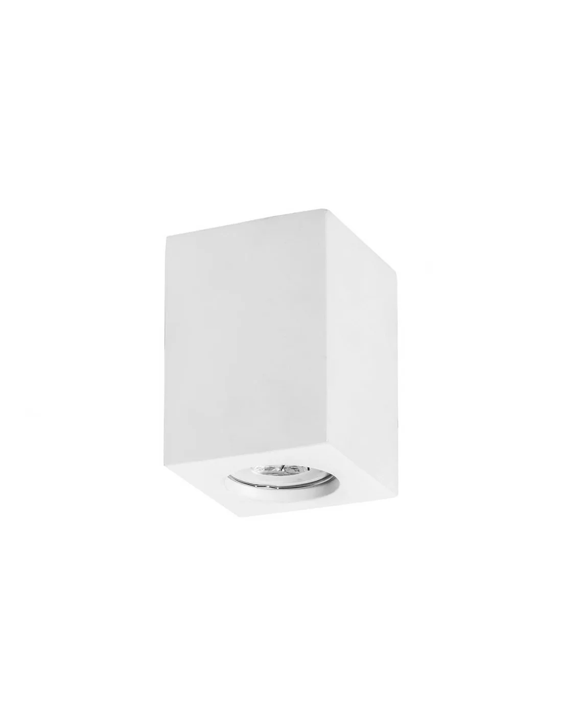 Questa plafoniera dalla struttura quadrata in gesso che consente la pittura del corpo in tinta a scelta, delle dimensioni di 8cm x 8 cm x 10 cm, è adattabilissima a qualsiasi tipo di ambiente.